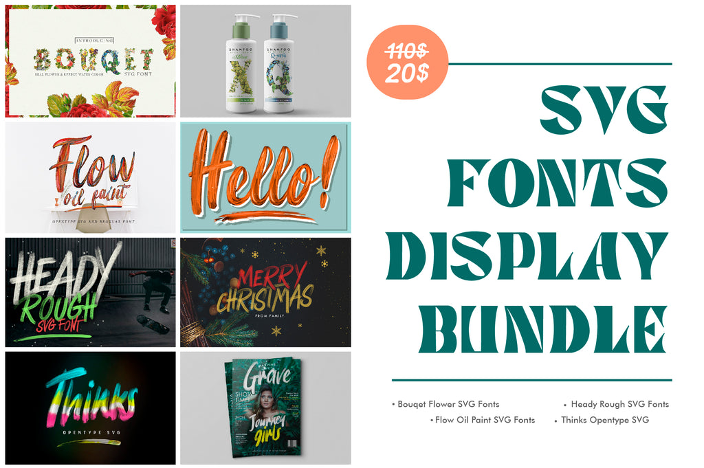 This deal includes 4 hand drawn SVG display fonts created by Anxiety Studio.