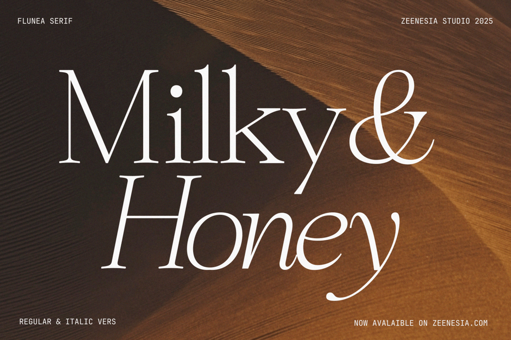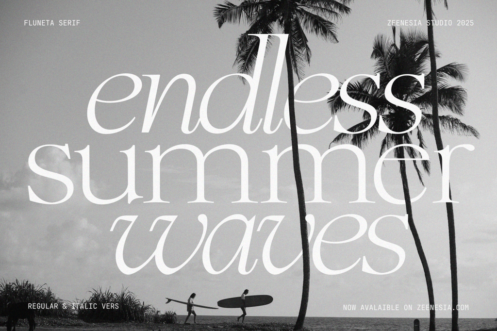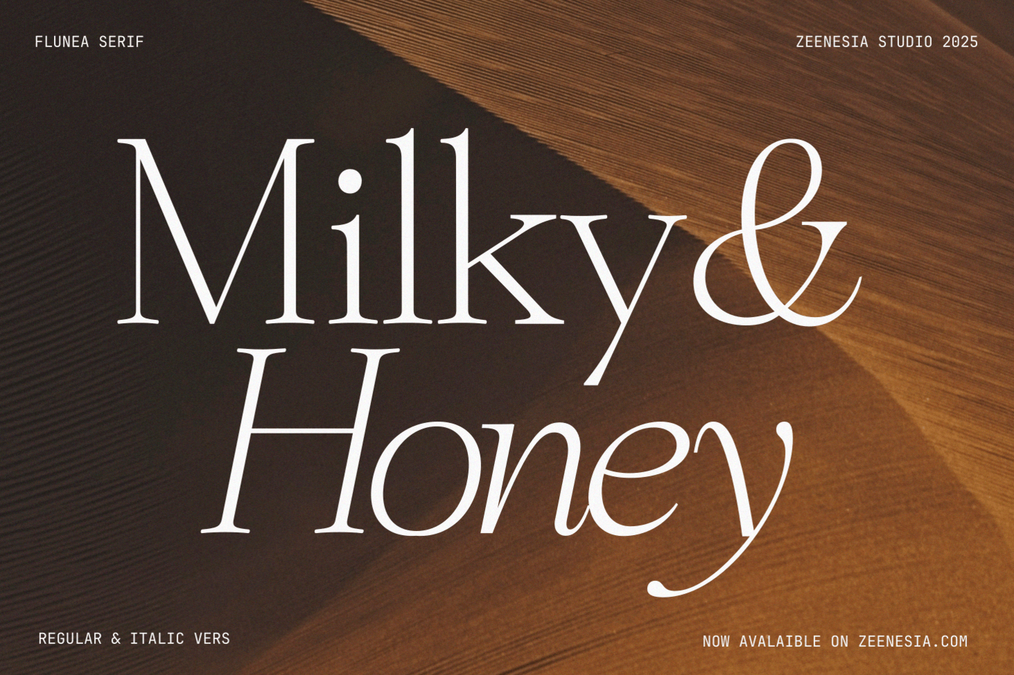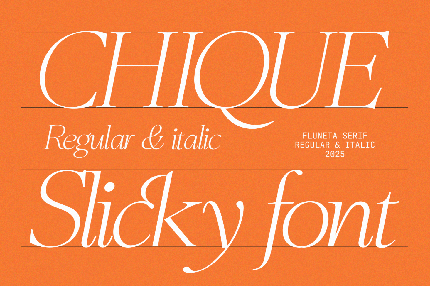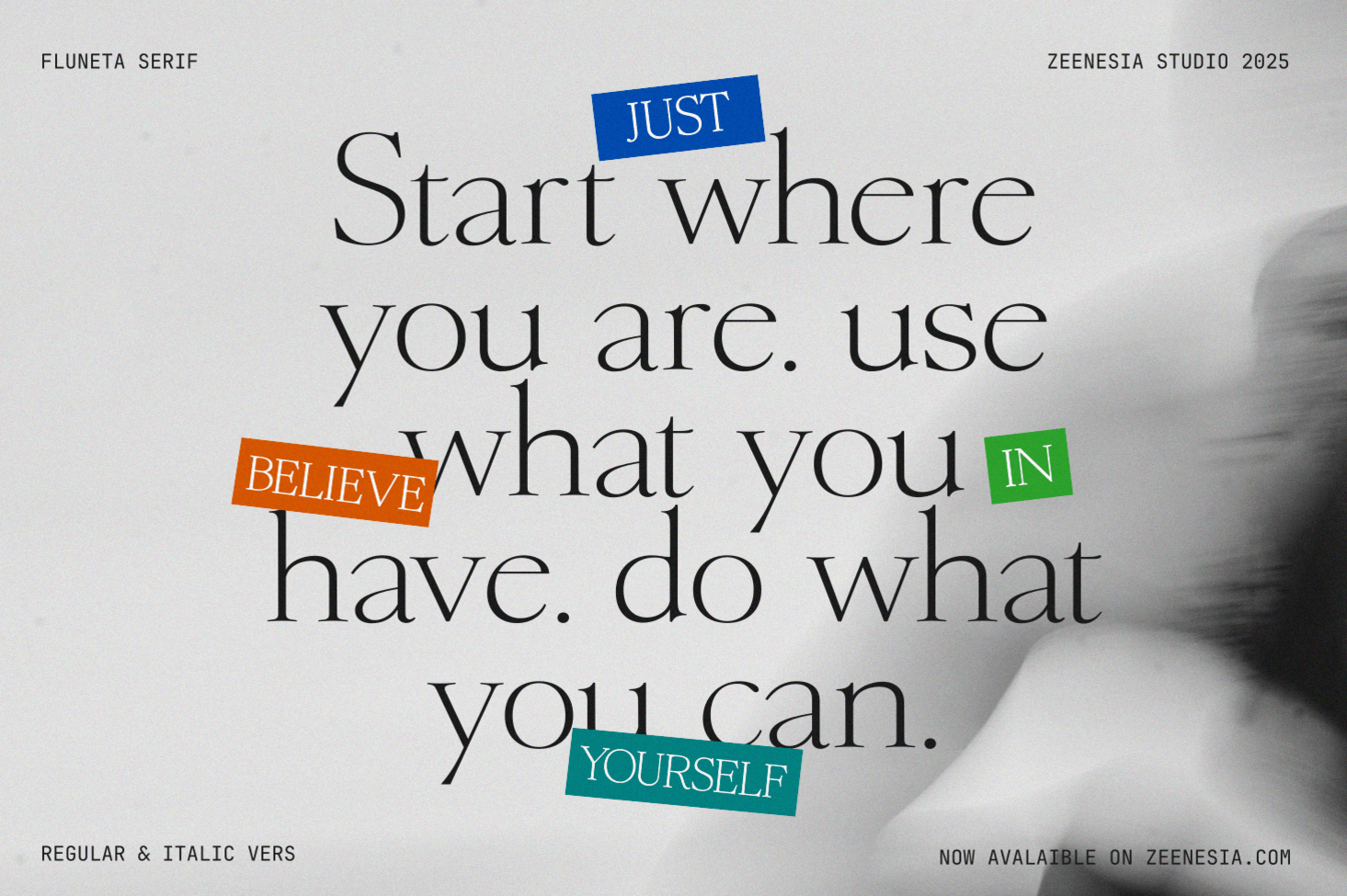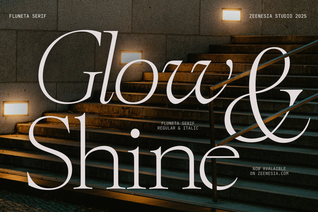 Fluneta created by zeenesia is a refined serif typeface that blends classic elegance with a touch of modern charm. Available in Regular and Italic styles, Fluneta was designed to bring sophistication and clarity to any layout — whether in print or digital.
