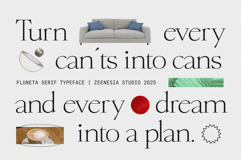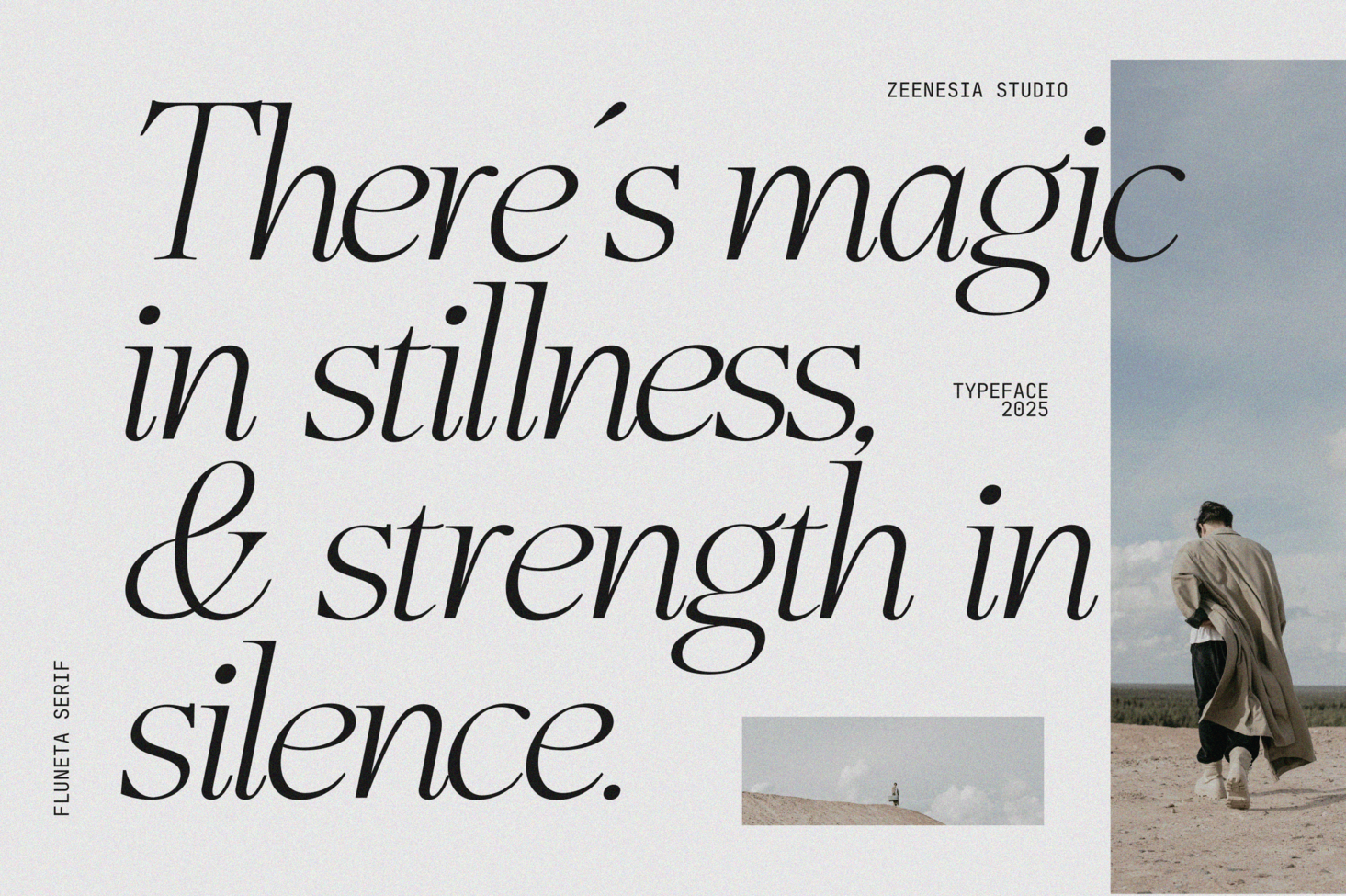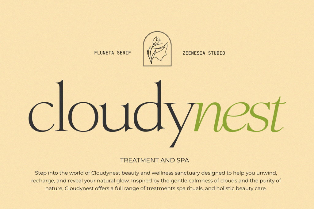 Let Fluneta elevate your typography with timeless character and a clean, polished aesthetic. Perfect for designers who seek a serif with soul.