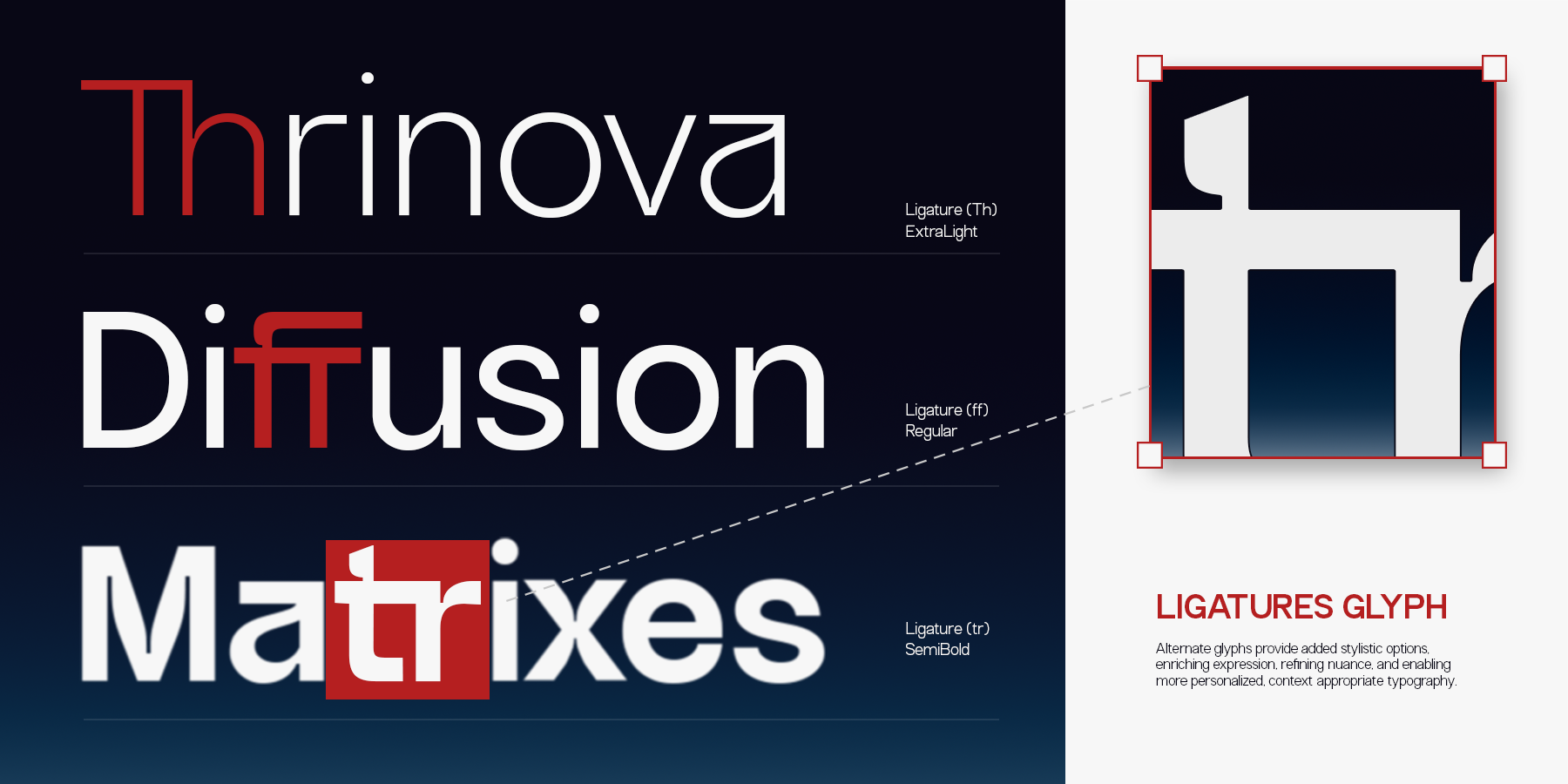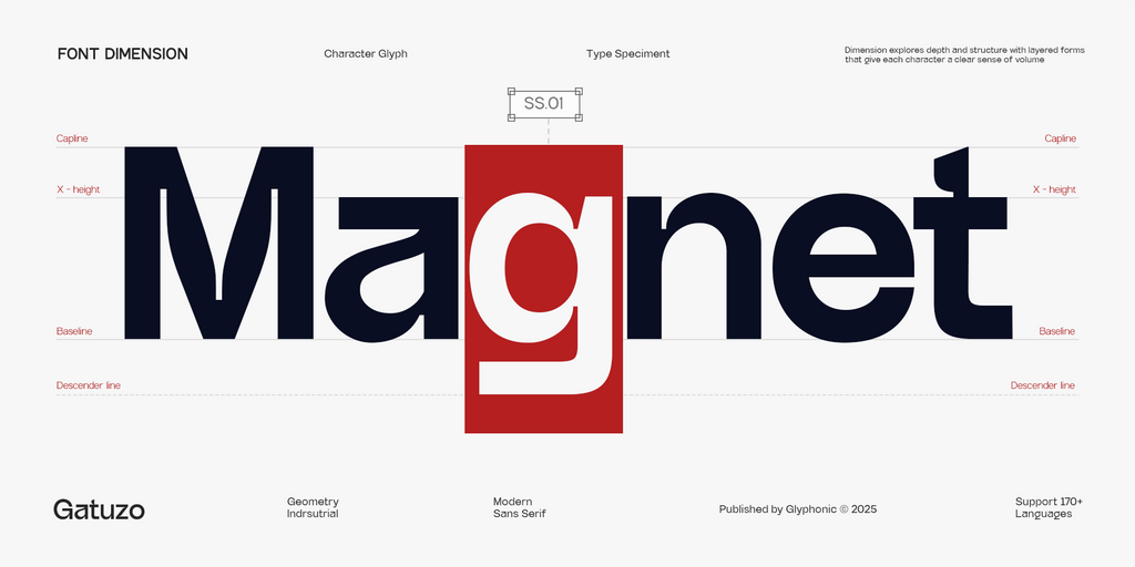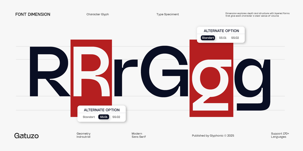 Crafted to embrace simplicity while maintaining a distinctive character, GC Gatuzo is ideal for branding, editorial layouts, tech-inspired projects, and impactful visual identities. Its well-balanced proportions and precise detailing make the typeface highly adaptable without losing its unique geometric appeal.