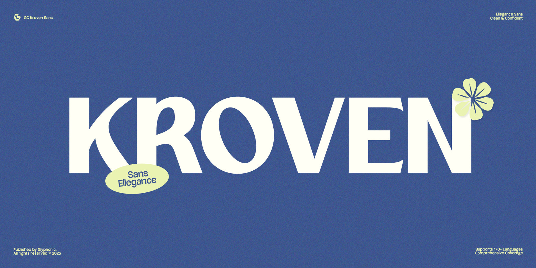 GC Kroven by Glyphonic is a modern sans serif typeface that blends timeless elegance with confident clarity. Perfectly suited for headlines, branding, logos, packaging, and editorial layouts, it’s designed to deliver a bold yet refined statement in every use.