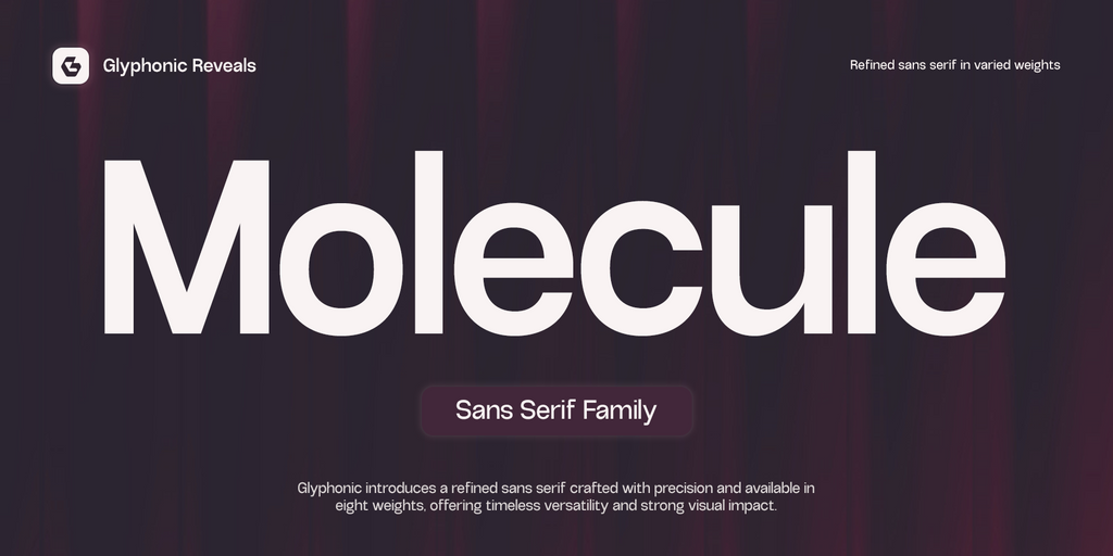 **GC Molecule by Glyphonic – Refined Sans Serif is a modern, clean, and precisely crafted typeface designed for clarity, refinement, and versatile usability.** With smooth geometry and balanced stroke details, it offers a polished and contemporary voice that performs beautifully across both print and digital environments.