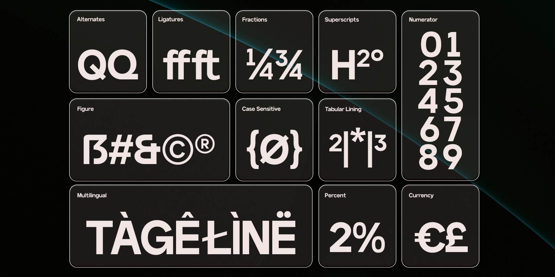 Features: - Uppercase & Lowercase - Numbers & Punctuation - Modern Geometric Construction - Multilingual Support (170+ Languages) - File Formats: OTF, TTF, Webfont