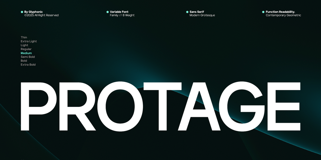 **GC Protage by Glyphonic – Pure Modern Clarity is a contemporary sans serif typeface designed to deliver exceptional clarity, strength, and modern versatility.** Built with clean geometry and confident strokes, it offers a powerful yet refined voice that performs seamlessly across both digital and print media. Created to express simplicity without losing character, **GC Protage** is ideal for branding, editorial layouts, tech-driven projects, and striking visual identities.