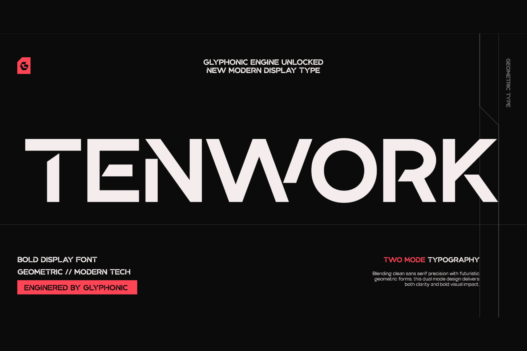 **GC Tenwork by Glyphonic – Modern Tech Sans is a forward-thinking sans serif typeface designed for precision, clarity, and modern digital performance.** Built with clean geometry and strong, confident strokes, **GC Tenwork** delivers a sharp, tech-driven character that feels contemporary and reliable across all media.