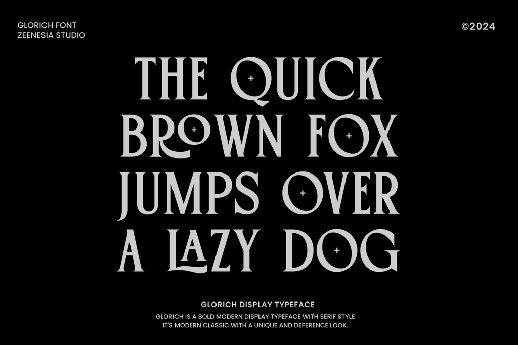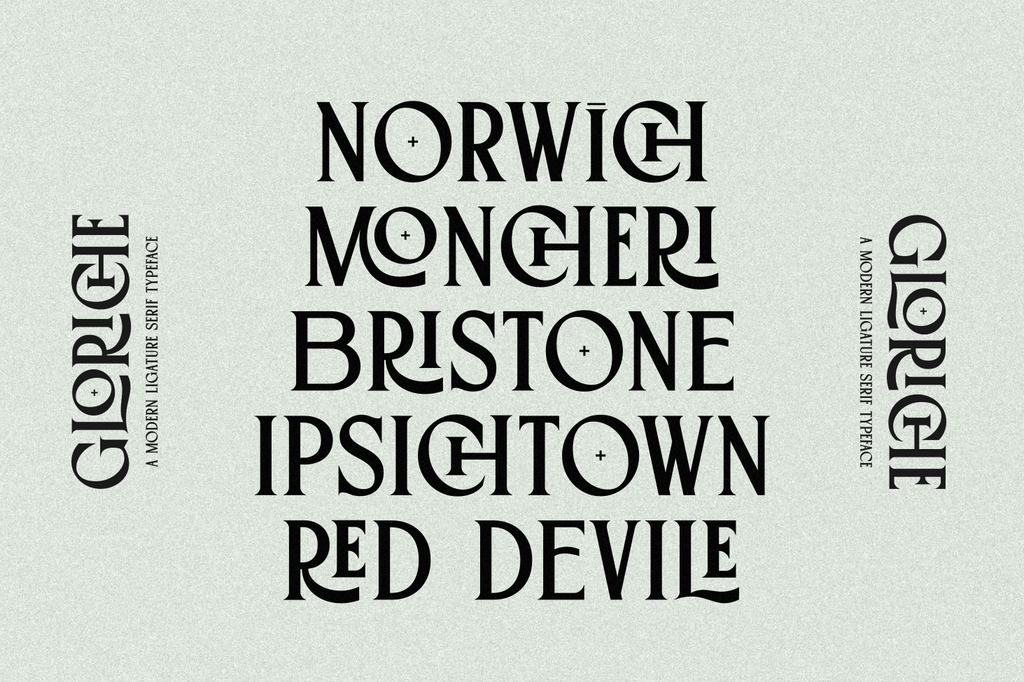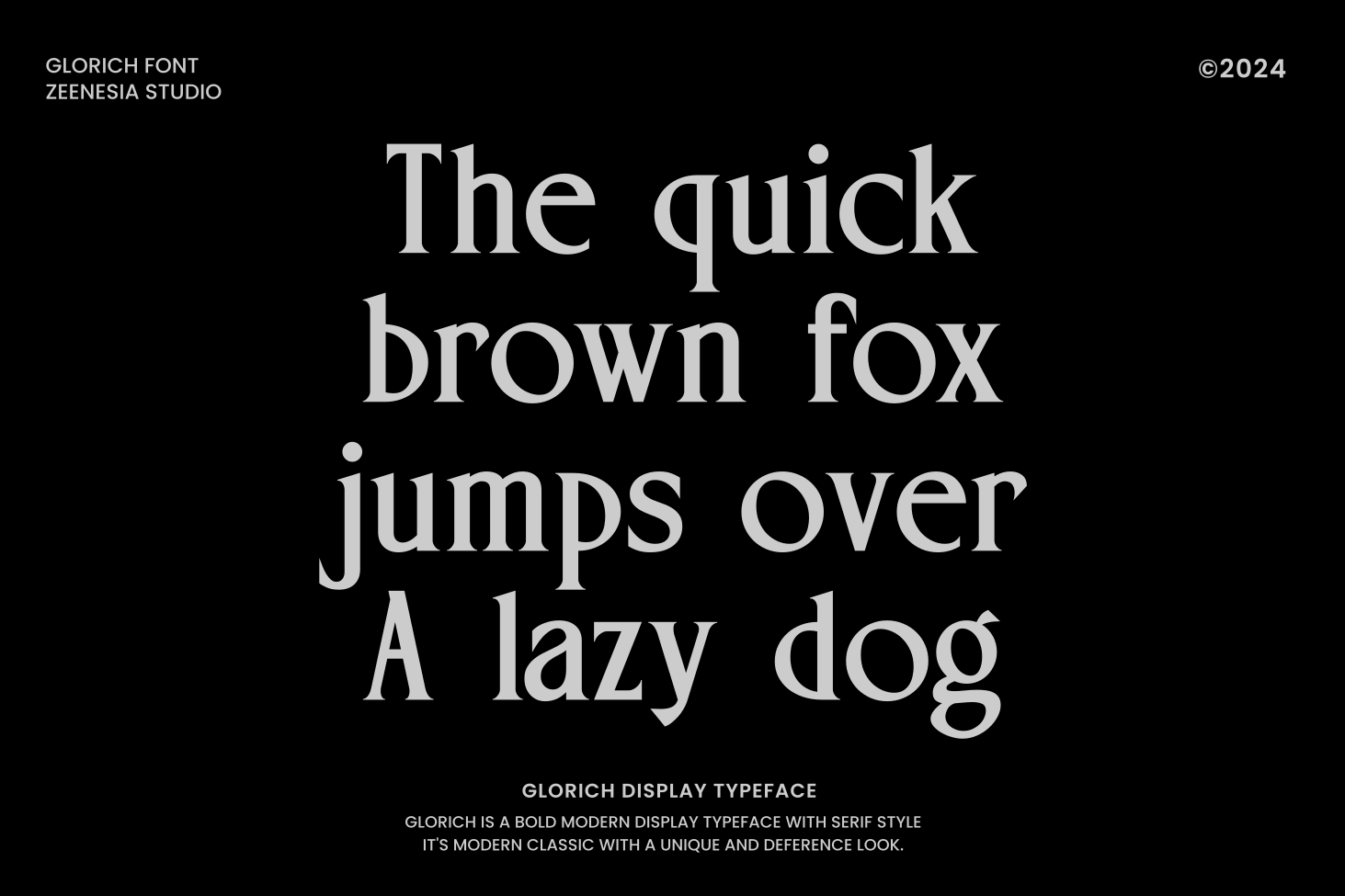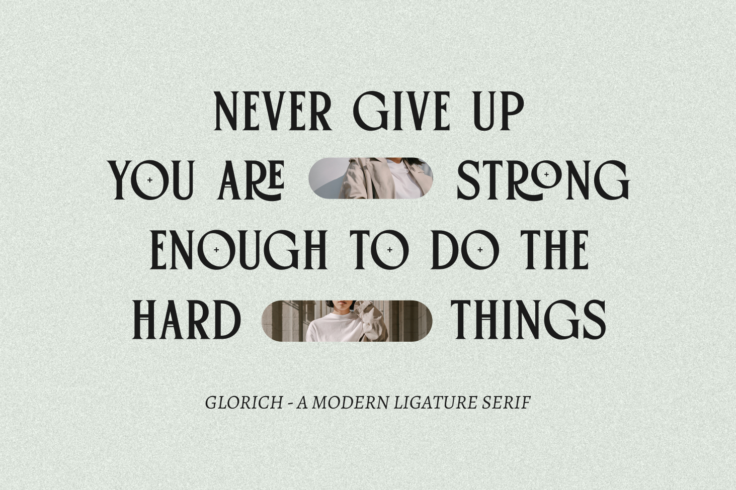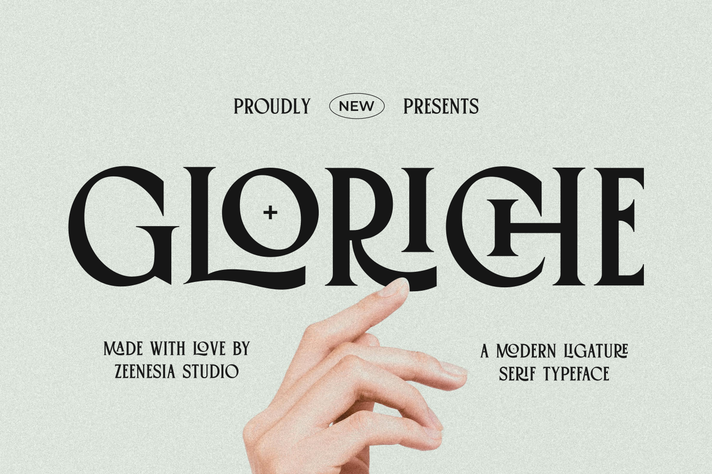 Gloriche by zeenesia is a refined and captivating typeface that effortlessly blends modern elegance with timeless charm. Its sleek design features a series of meticulously crafted ligatures, each adding a touch of sophistication and fluidity to your text. Perfectly suited for branding, editorial design, or any creative project, Glorich elevates the visual experience with its bold yet graceful presence. Its strikingly modern appeal, coupled with delicate curves and harmonious connections, makes it the ideal choice for those seeking both style and uniqueness in typography.
