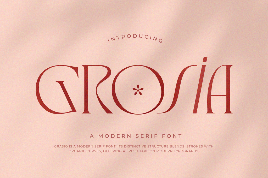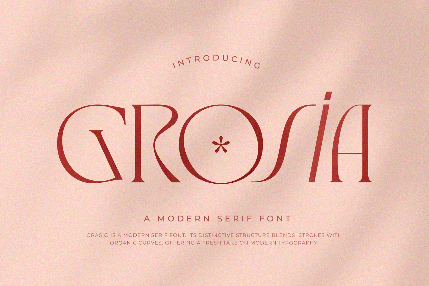 Presenting Grosia created by zeenesia, an enchantingly feminine serif font, exquisitely crafted to add a dash of romance and charm to your designs. Perfect for a myriad of applications, from digital design and presentations to handmade crafts and delightful greeting cards, Grosia's allure captivates and enchants, swiftly becoming an indispensable element in your creative tool kit. Its alluring aesthetics wonderfully embellish your creations, ensuring they make a memorable mark regardless of the occasion. Its appealing visuals enhance your work, promising to leave a distinct impression irrespective of the context.