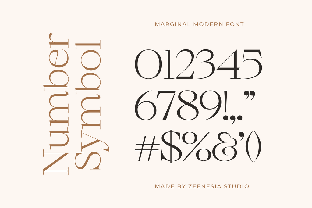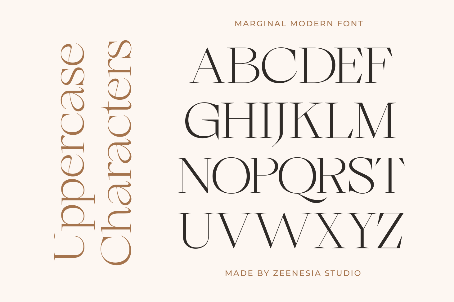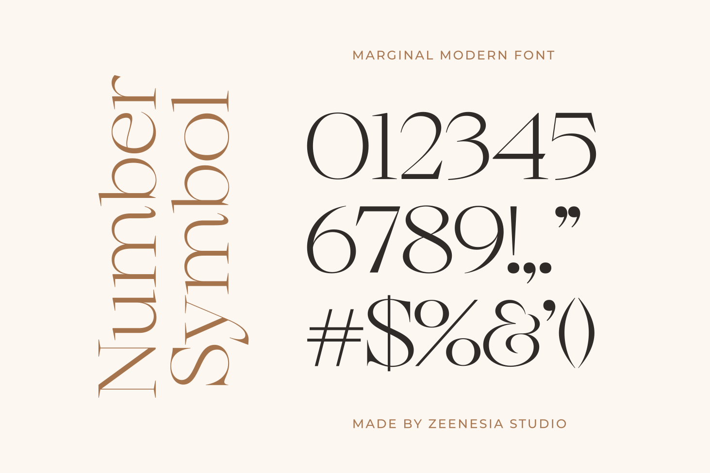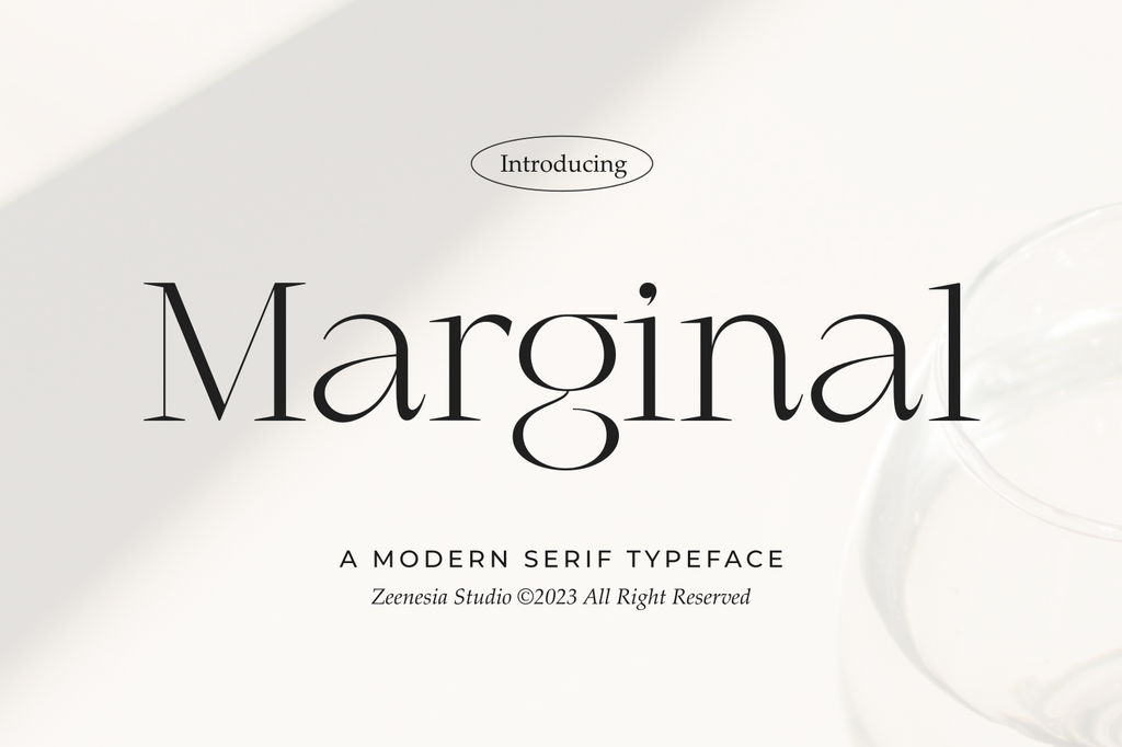 Marginal created by zeenesia is a elegant display font with serif style. It's modern and classic font with a unique and deference look . Perfect if you need a dose of fun in your project. Perfect for editorial projects, Logo design, web font, clothing branding, product packaging, magazine headers, or simply as a stylish text overlay to any background image.