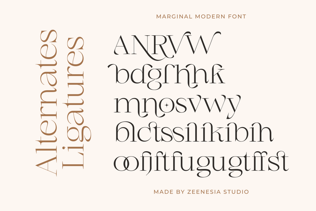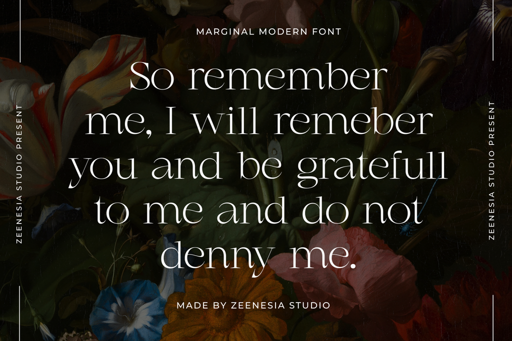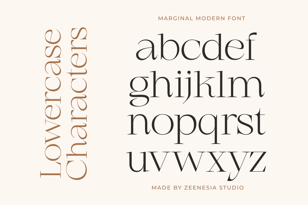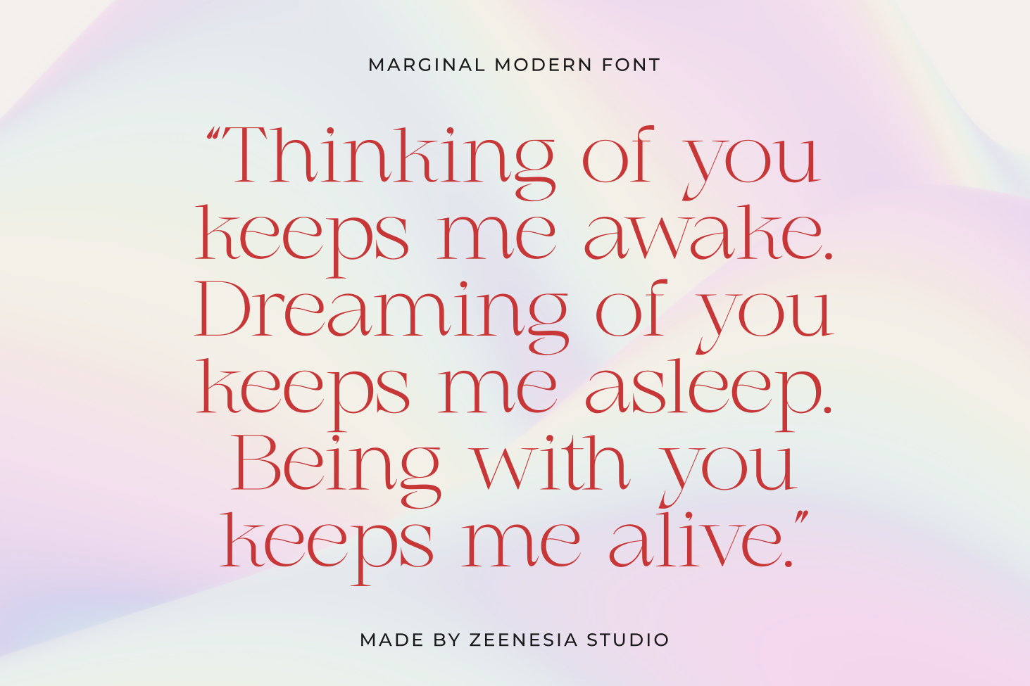Marginal created by zeenesia is a elegant display font with serif style. It's modern and classic font with a unique and deference look . Perfect if you need a dose of fun in your project. Perfect for editorial projects, Logo design, web font, clothing branding, product packaging, magazine headers, or simply as a stylish text overlay to any background image.