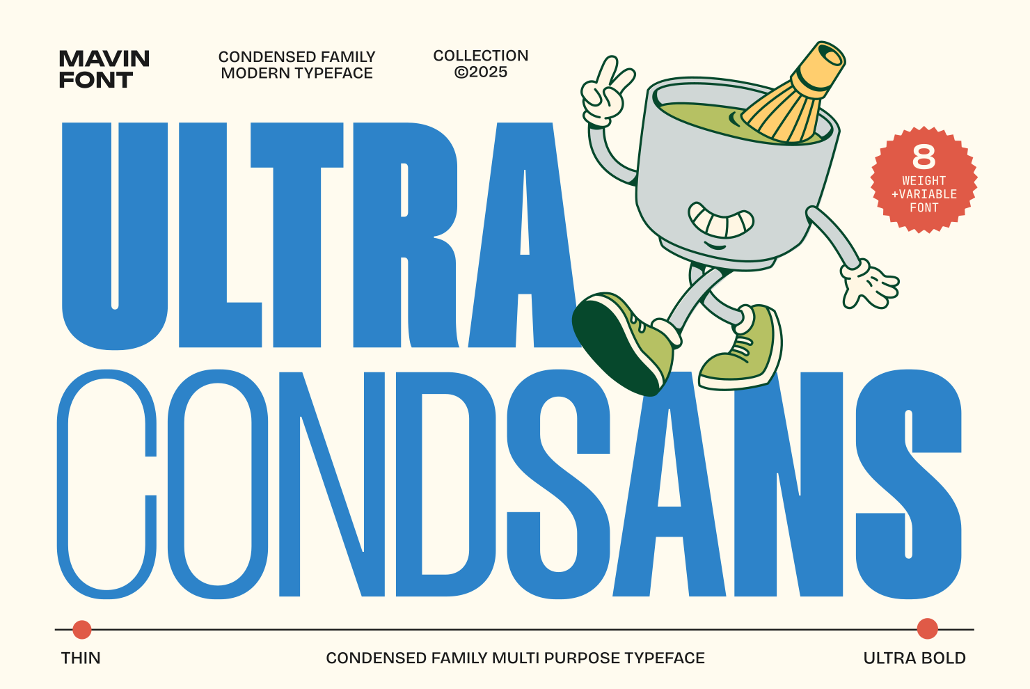 This type family comes with 8 expressive weights — from Thin to Ultra-Bold — plus a versatile Variable Font, giving you full control over contrast, width, and visual intensity. Whether you're creating headlines, posters, branding, editorial layouts, or digital interfaces, Mavine adapts effortlessly to any creative direction.