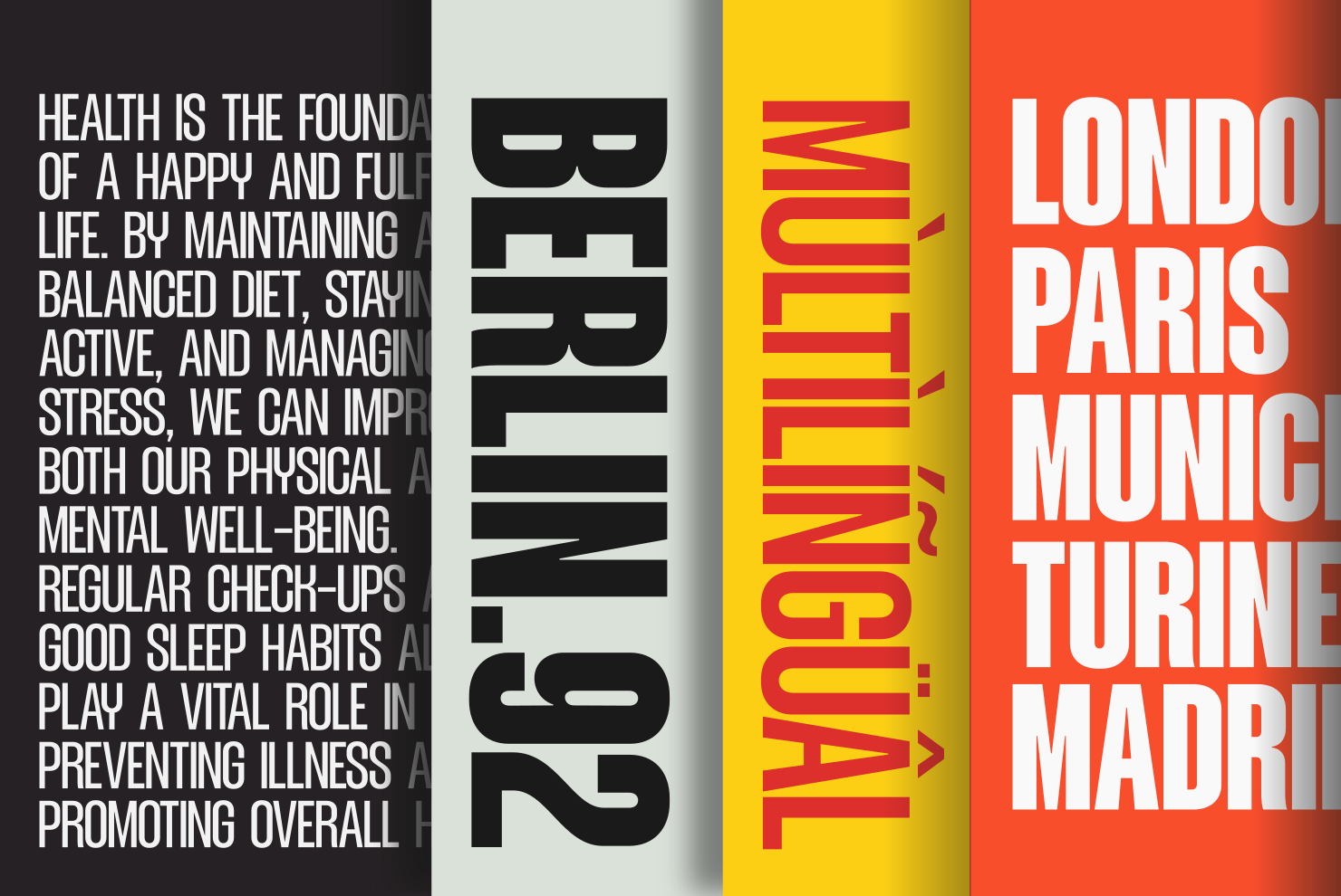 Its clean condensed form makes it highly functional, while its strong character ensures every word feels striking, energetic, and unmistakably modern. Perfect for designers who want a typeface that combines efficiency with attitude. Ideal for branding, posters, advertising, and editorial design
