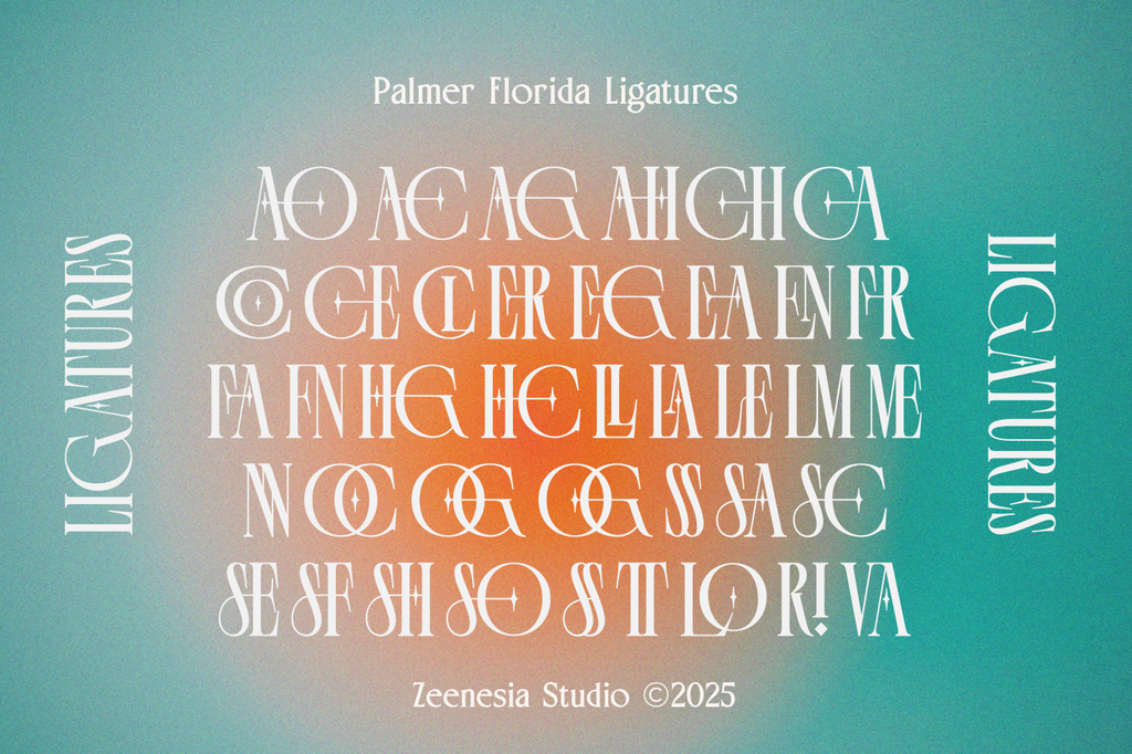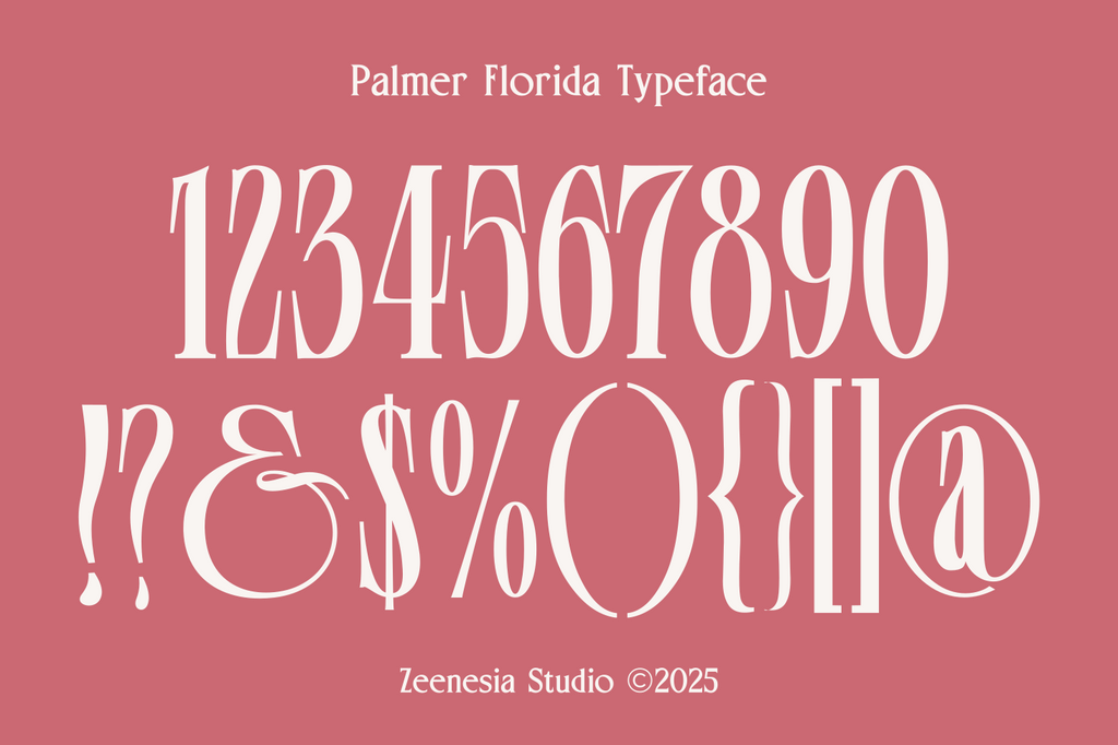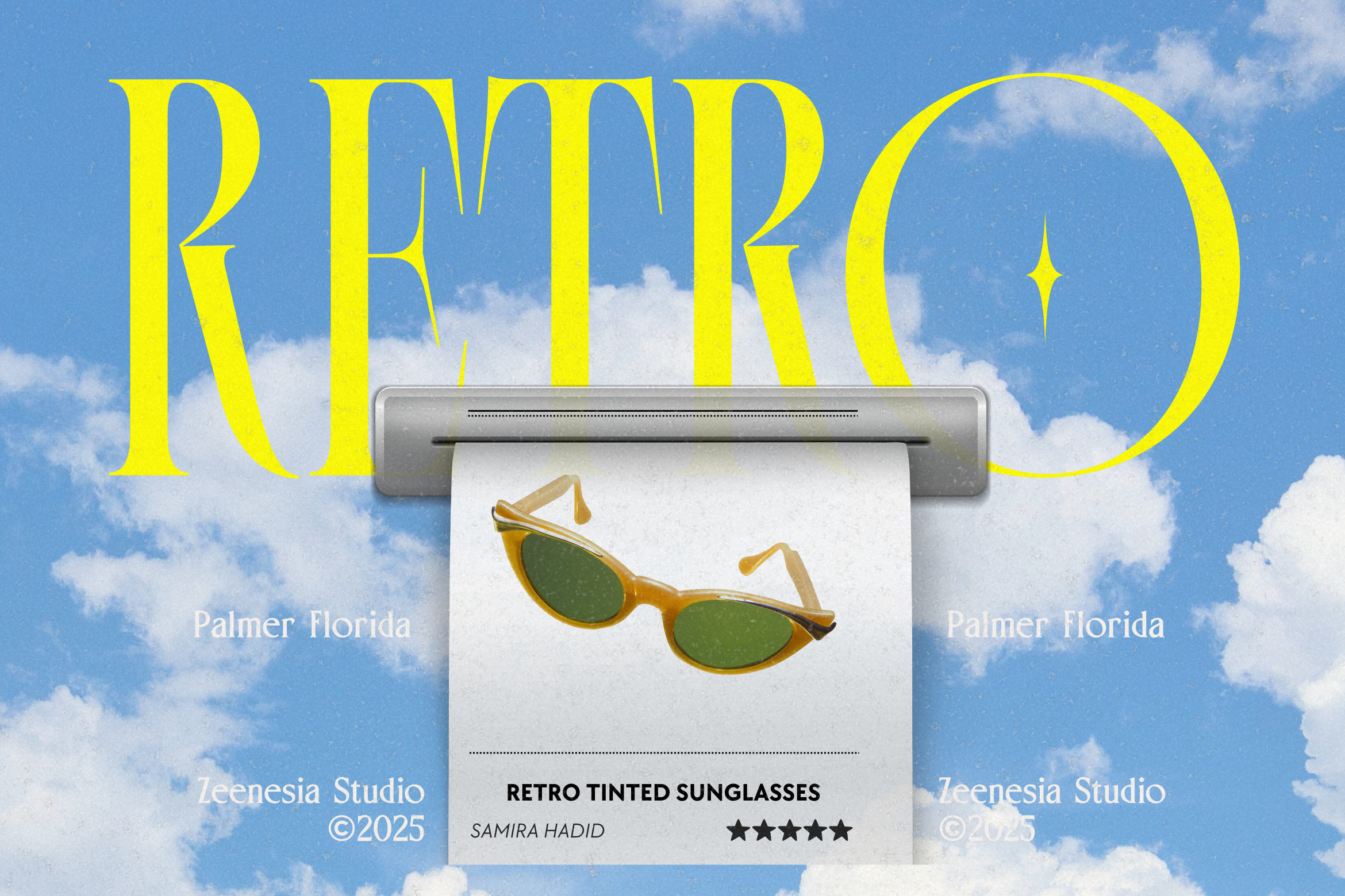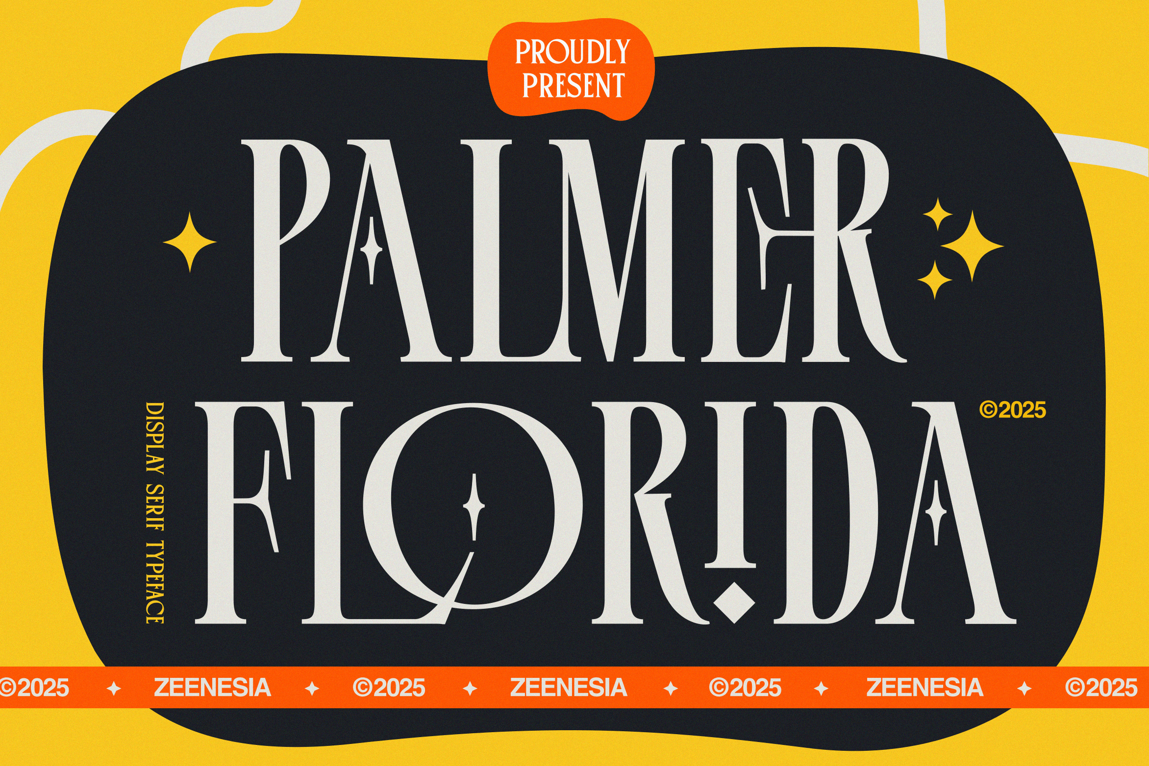 Palmer Florida created by zeenesia is a bold and charming display serif typeface with a unique retro twist. Featuring high contrast strokes, elegant curves, and whimsical star-shaped details, this font brings a delightful blend of vintage flair and modern personality. Perfect for logos, posters, packaging, or editorial headlines, Palmer Florida stands out with its playful yet classy character. Whether you’re aiming for nostalgic vibes or a fresh, stylish look, this typeface adds a magical spark to your designs.
