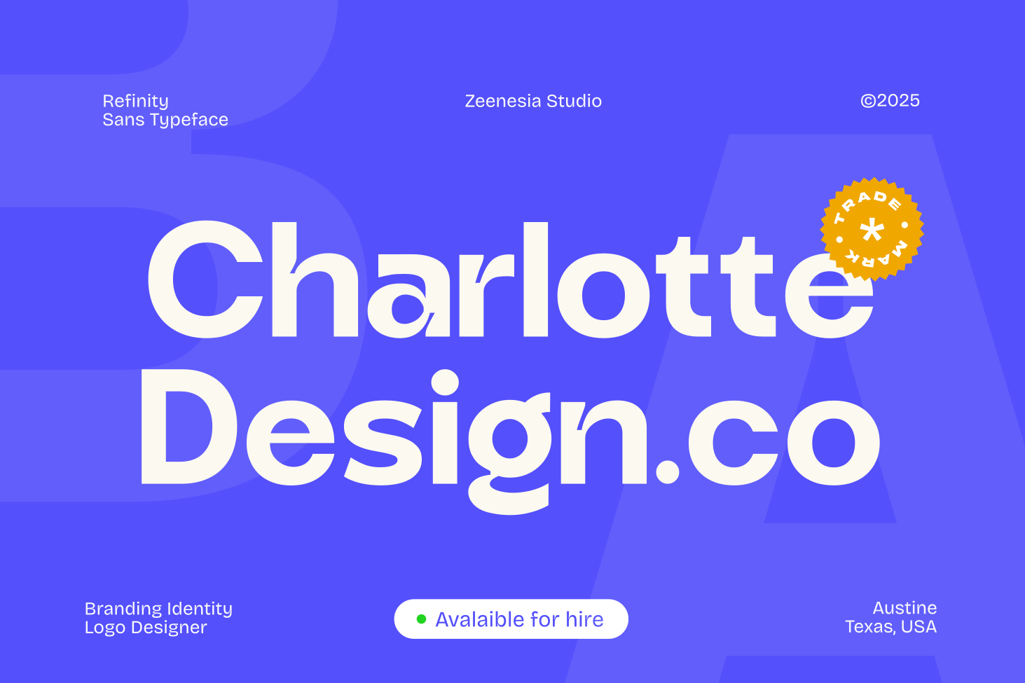 Refinity is a sleek and contemporary sans-serif font that embodies elegance and clarity. Designed with precision and attention to detail, this font is perfect for modern branding, editorial design, and user interfaces. Its clean lines and balanced proportions make it both versatile and timeless, suitable for any creative project.