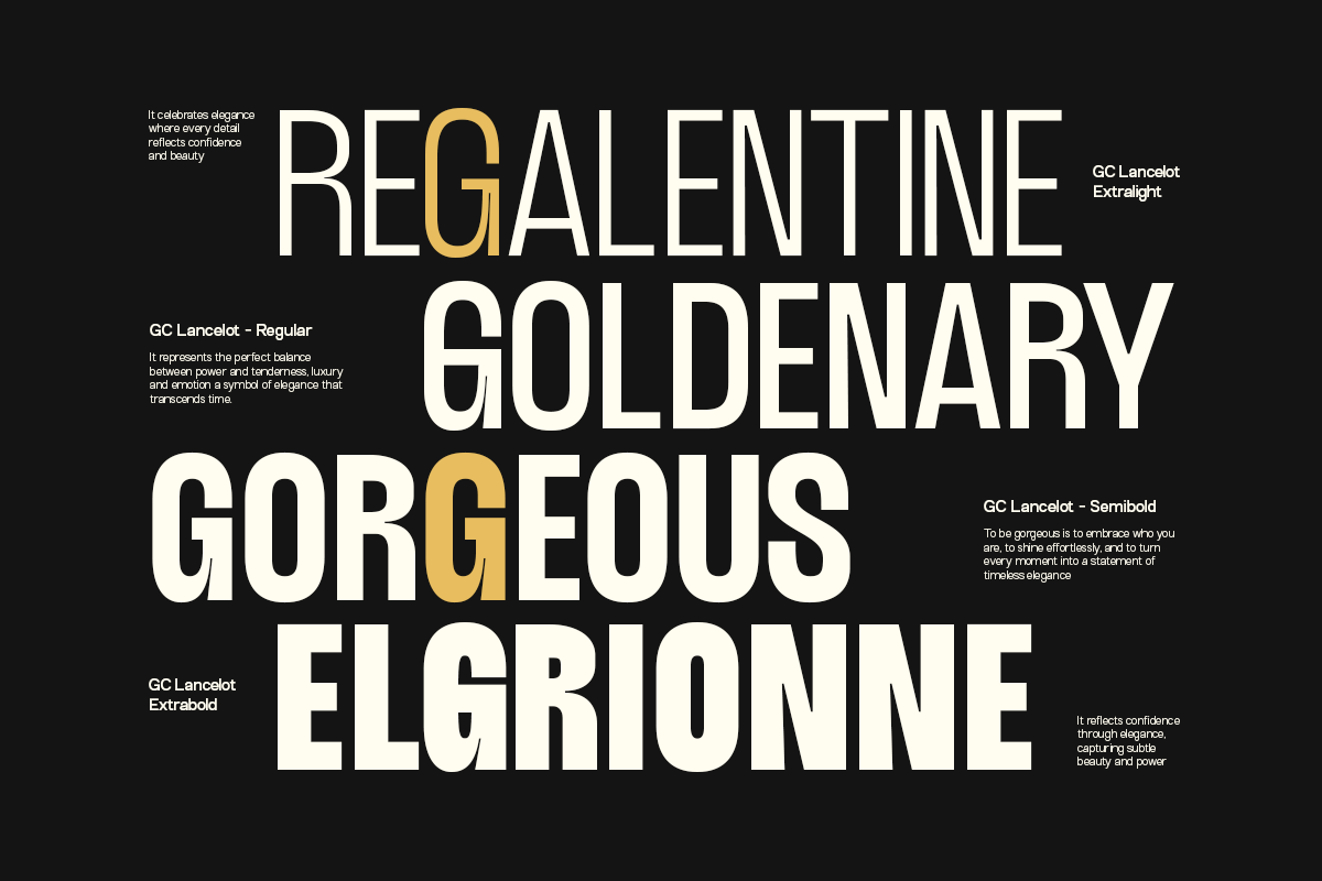 Designed for both clarity and character, TRT Lancelot balances clean geometry with expressive shapes, delivering excellent readability even at small sizes while standing out boldly at larger scales. This versatility makes it a reliable choice for designers seeking a modern condensed font with a unique twist.