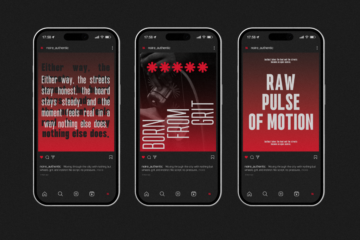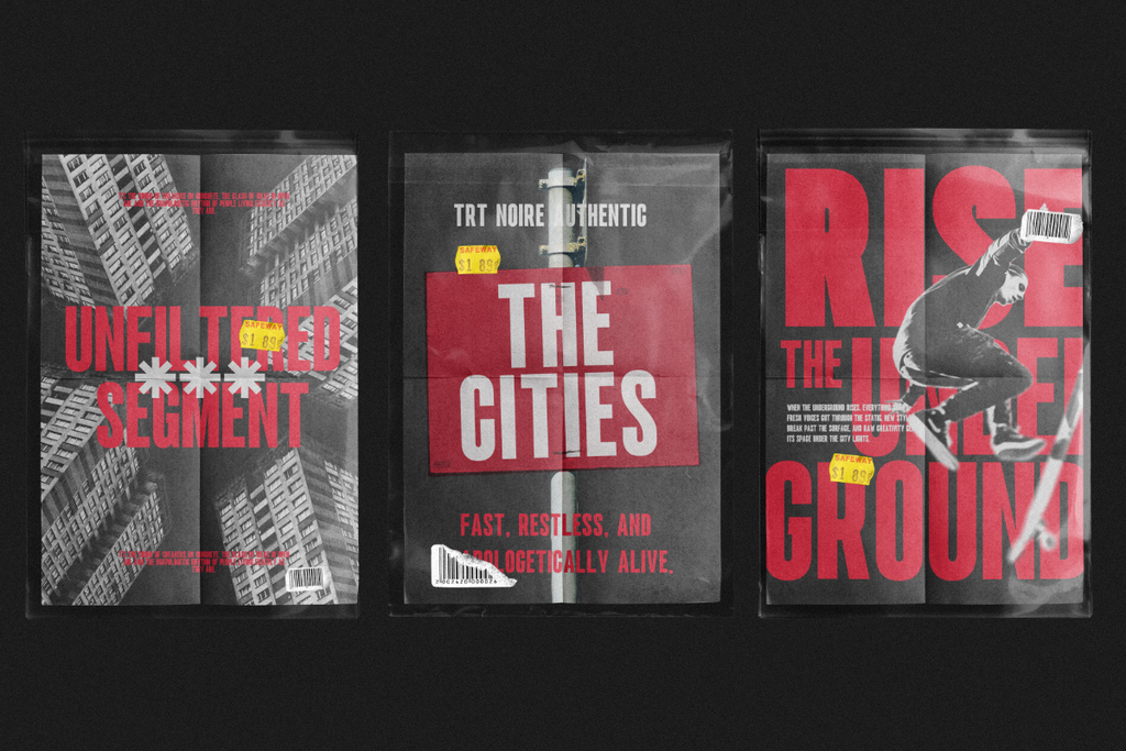 TRT NOIRE AUTHENTIC created by Truetype is a condensed sans serif built to amplify the bold, cinematic mood of the poster: sharp, vertical, and charged with energy. Its towering letterforms slice through the gradient like light in a dark room, combining strict geometry with an atmospheric glow that feels raw and modern at the same time.