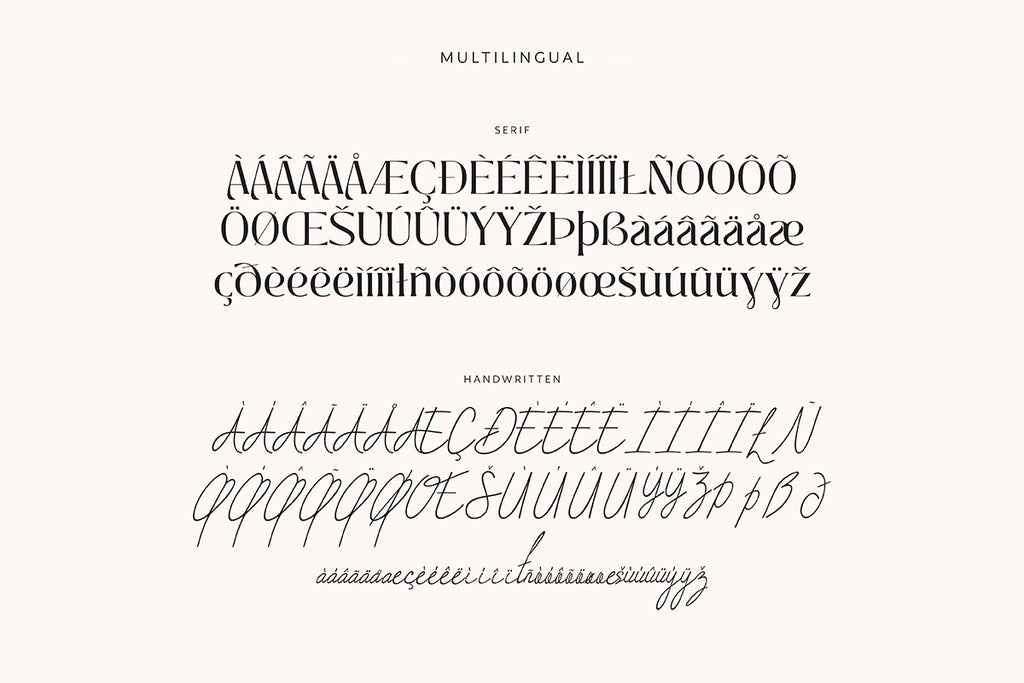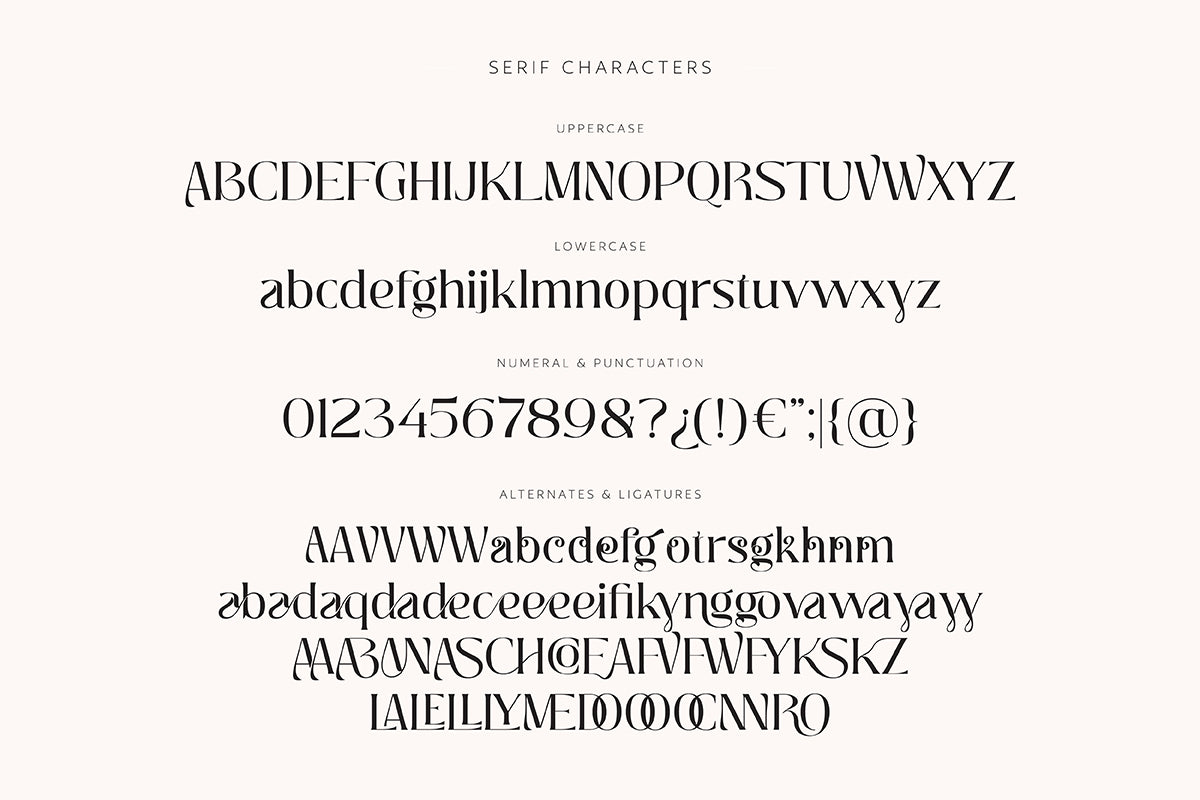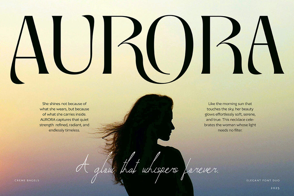 Creme Bagels Font Duo is a unique font design consisting of a combination of a classy serif font and a classic script handwritten font. It is specifically created to cater to the design needs of elegant and feminine themes, such as in magazines or branding materials. The serif font has a classic and timeless character, while the script font is designed with a personal and human touch, giving a modern and creative feel. This font duo is perfect for use in various design media such as magazines, books, posters, brand identities, logos, and more. By choosing Creme Bagels Font Duo, you can add a touch of professionalism and modernity to your designs, while also providing quality and character to every design you create.