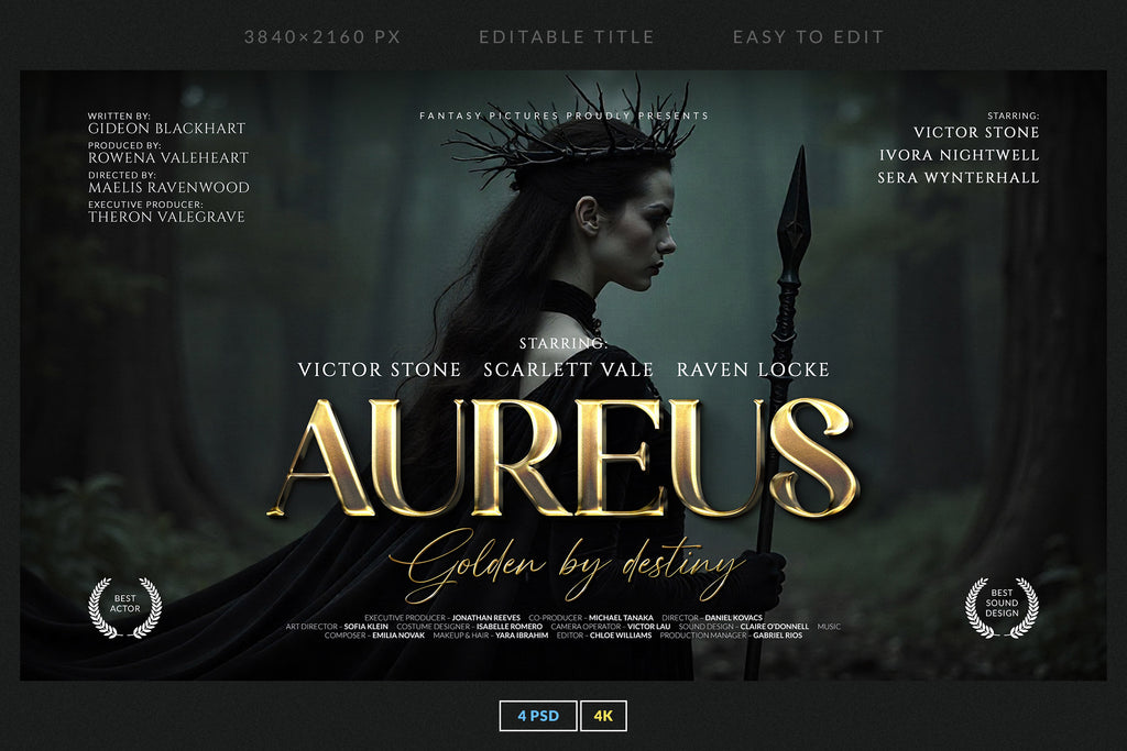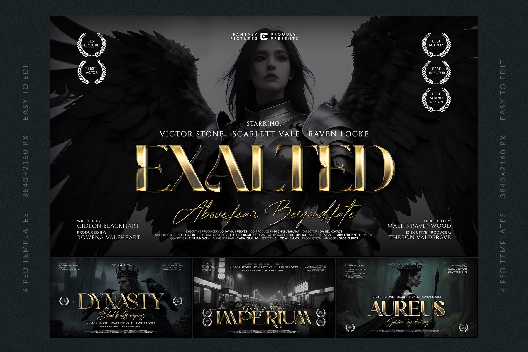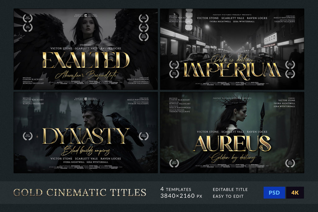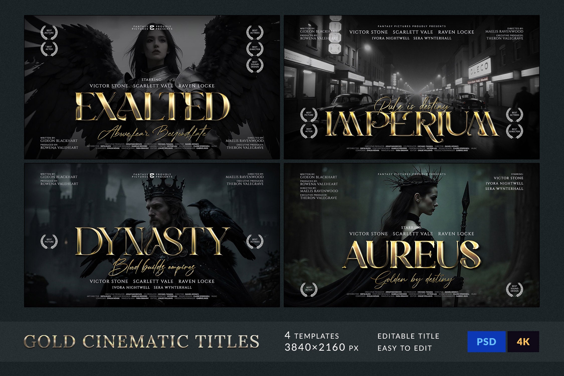 Perfect for film titles, trailers, title sequences, posters, streaming thumbnails, and promotional visuals, this collection helps your text instantly feel powerful, elegant, and cinematic. The gold text effect adds depth, realism, and prestige, making every title look worthy of the big screen.