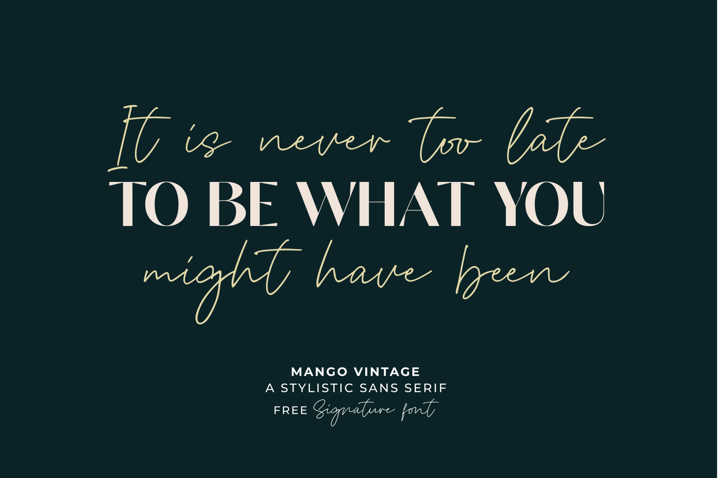 Vintage Mango by zeenesia is a modern and elegant sans serif font. Vintage Mango is well-suited for advertising, branding, logotypes, packaging, titles, headlines and editorial design. I created more much alternates variant and much natural ligatures to make this font very classy and look so beauty. Vintage Mango was built with open type features make your project will be perfect.