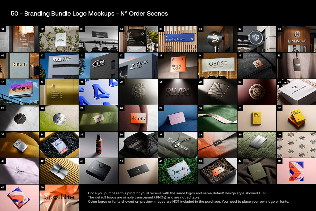 Take your brand presentations to the next level with our premium collection of 50 logo mockups - V6 created by Asylab. Crafted for realism and contemporary style, this bundle provides extensive customization options, including color variations and diverse logo effects.