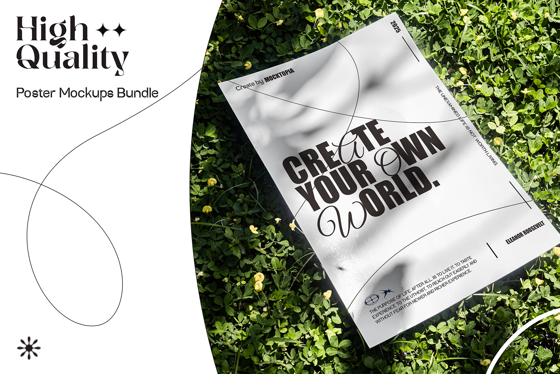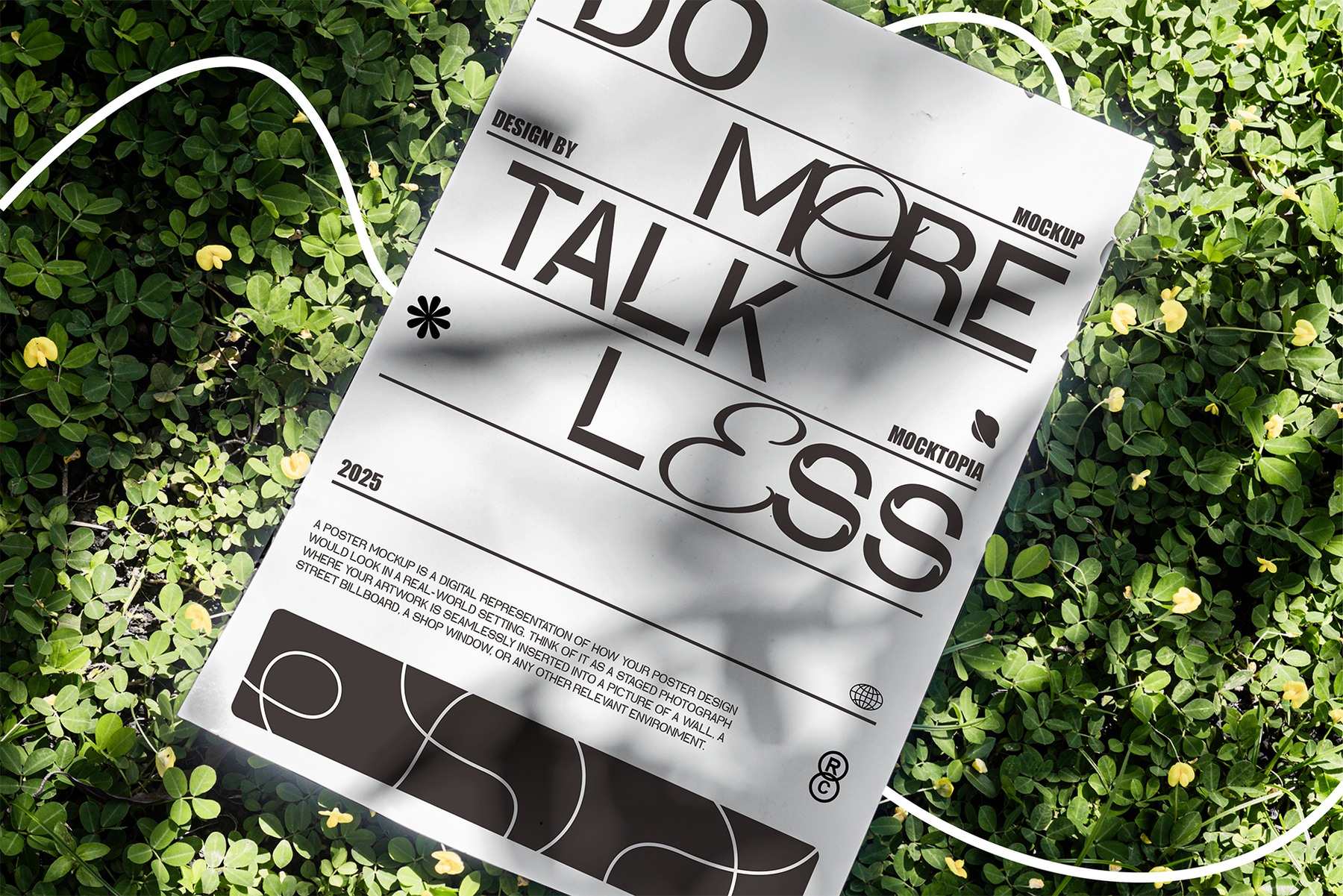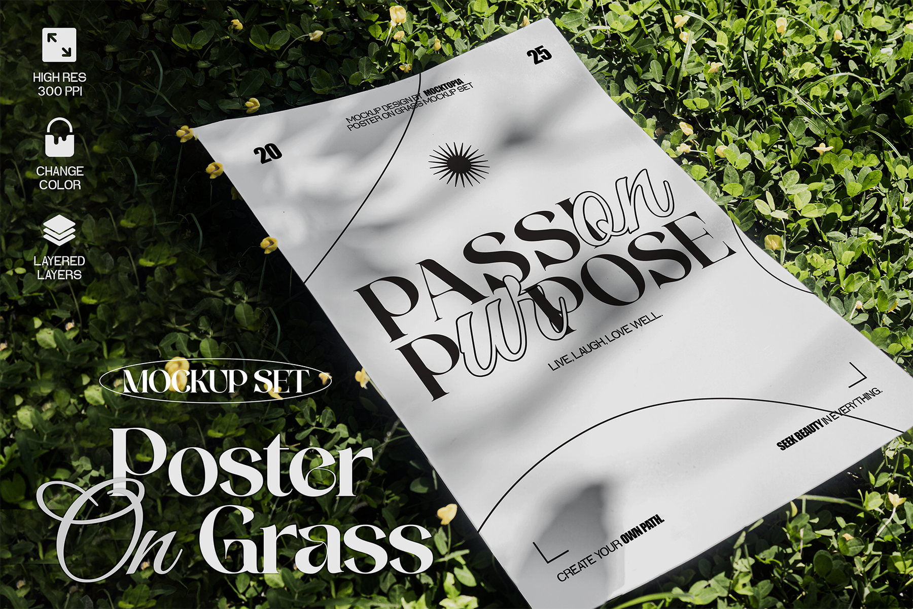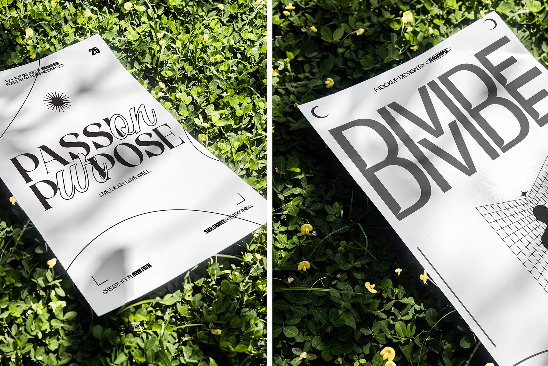 Each PSD file is built with Smart Objects, so you can drop in your A3 artwork, adjust colors, tweak contrast, and customize the overall mood in just a few clicks. Use it for portfolio shots, social media posts, storefront previews, or online shops where you want your poster designs to feel alive in a real environment.Bring your poster designs into a fresh, outdoor setting with the A3 Poster Mockup (On Grass). This mockup set places your artwork on lush green grass with realistic sunlight, soft shadows, and subtle paper bends—perfect for brands that want a natural, lifestyle–driven presentation. Ideal for event flyers, typographic posters, quotes, or branding campaigns that need an organic, grounded feel.