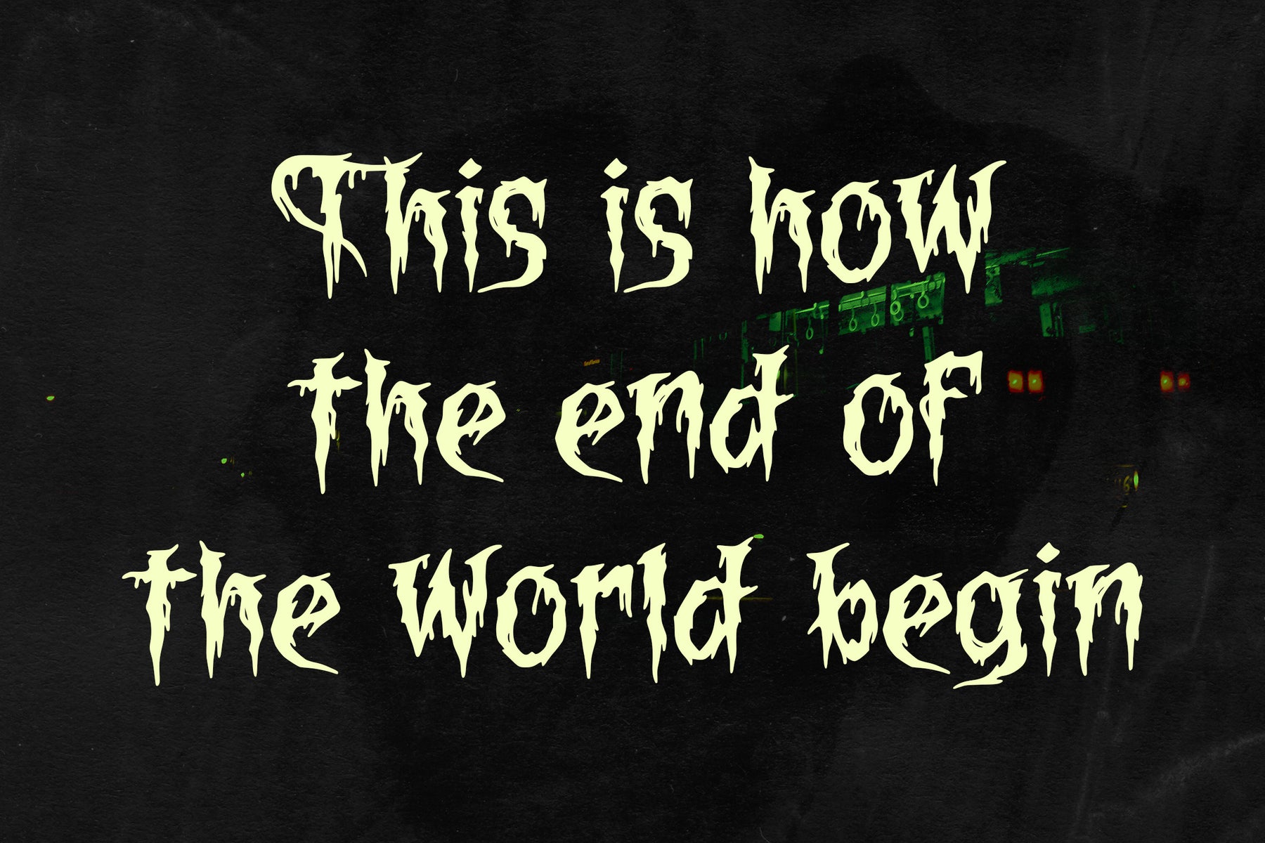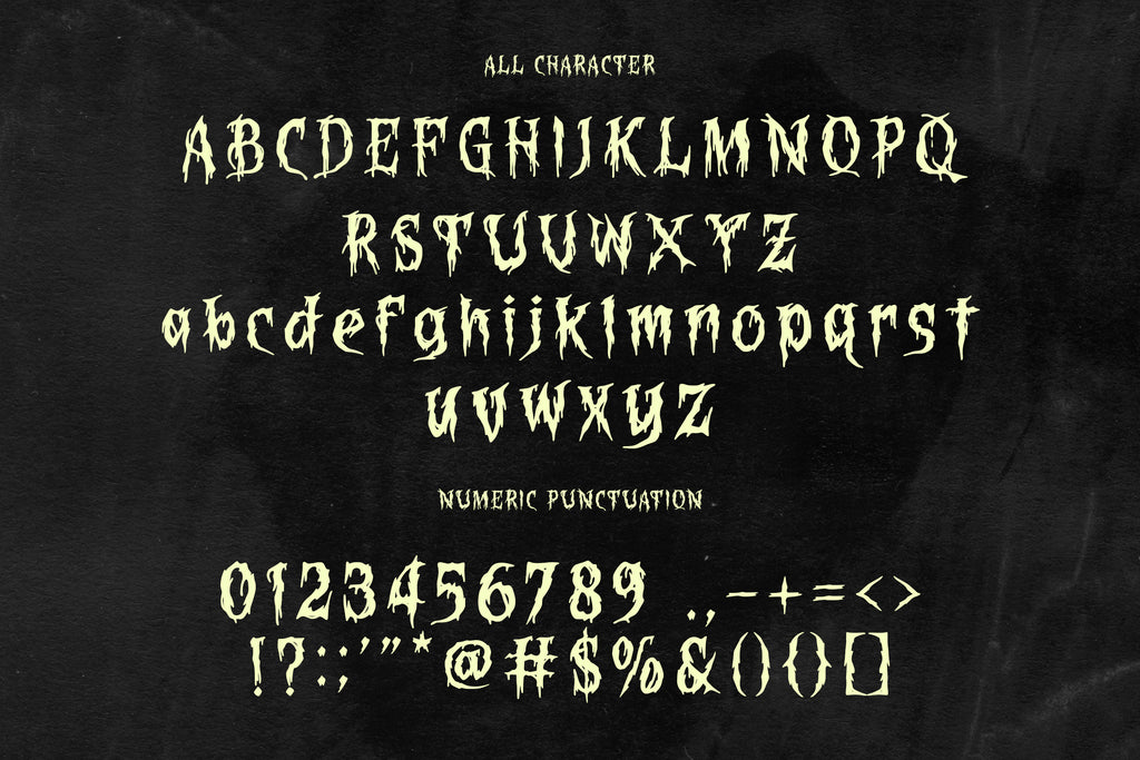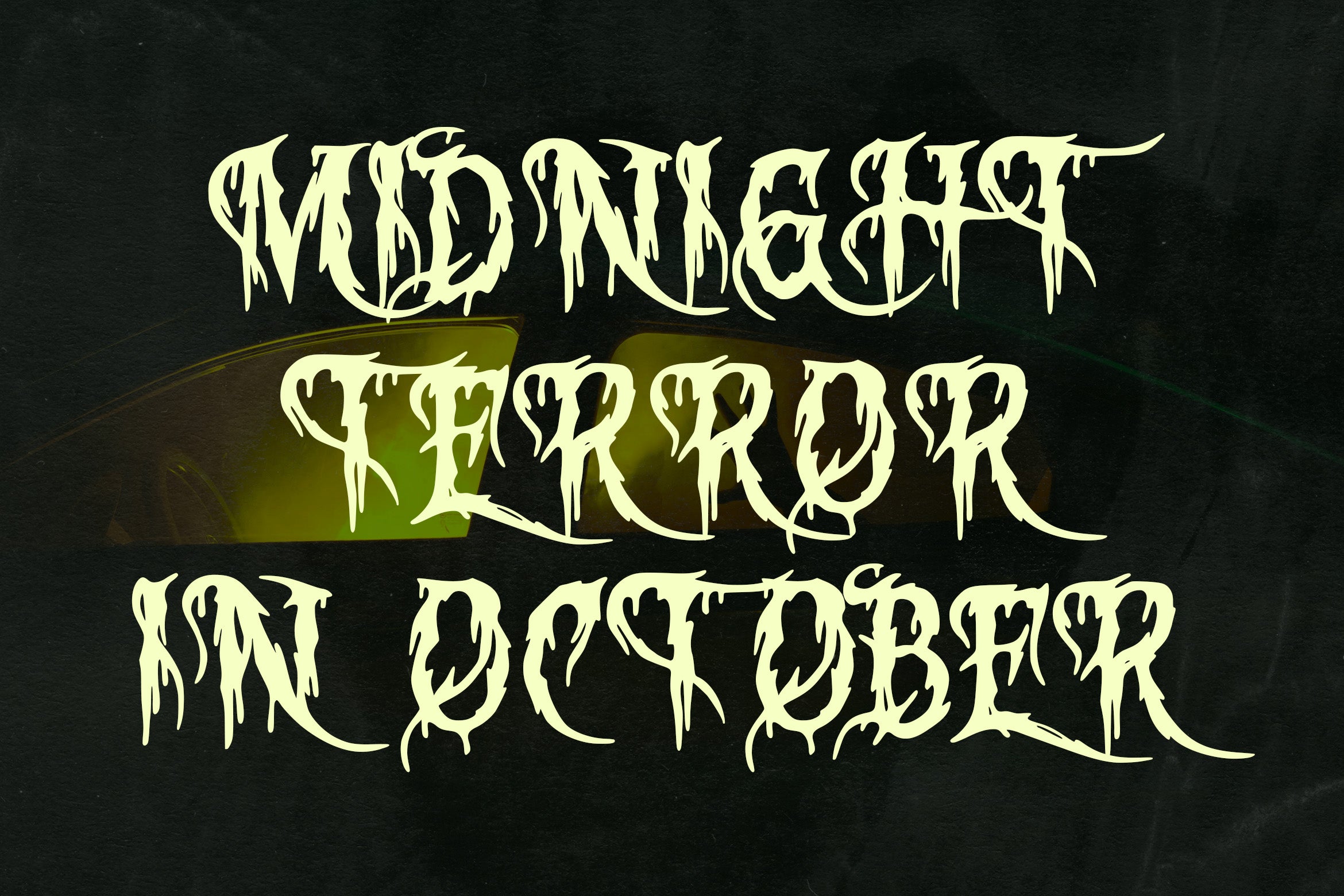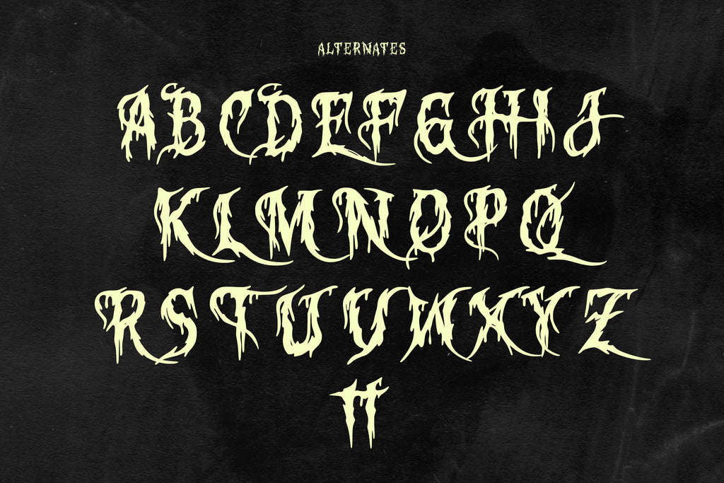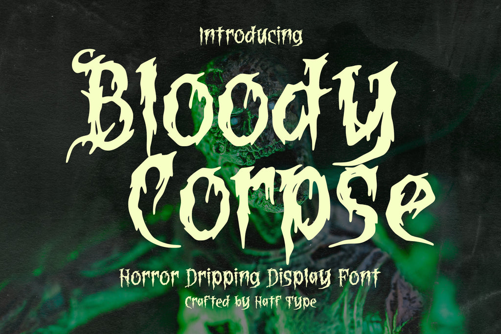 Unleash a wave of terror with Bloody Corpse created by HATF TYPE, an alarming display font bathed in chilling nuances. Trickling down each letter is a blood curdling, fresh blood drip effect, embodies a sense of dread perfect for horror film poster headlines, Halloween centric creations, and spine tingling survival games. Infuse your unique projects with an element of horror and theatrical drama. Bloody Corpse’s audacious and substantial lines, coupled with robust letter forms, masterfully depict the sinister dripping, providing a cold shiver of terror and immediate intrigue. This font is a surefire way to captivate and pique the curiosity of your audience.