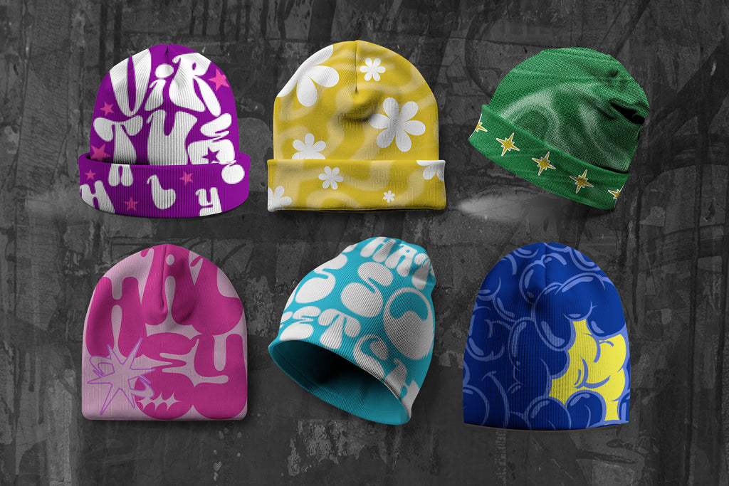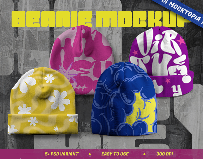 Haley by Mocktopia – Beanie Hat Y2K Mockup is a cozy, street-ready beanie mockup set designed for Y2K, retro, and playful apparel drops. Perfect for clothing brands, merch designers, and print-on-demand sellers who want to showcase logo patches, wordmarks, or graphic icons on knitted beanies with clean, realistic presentation.