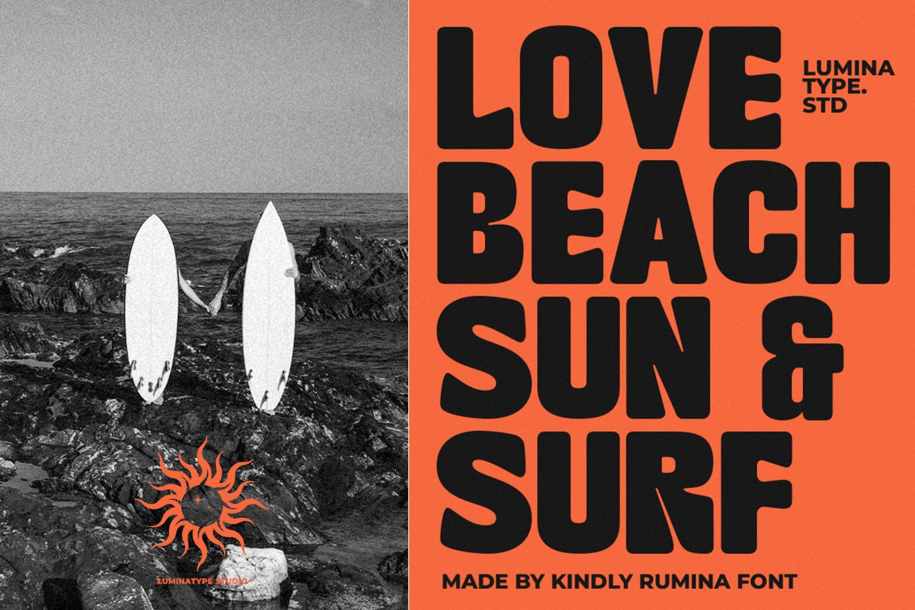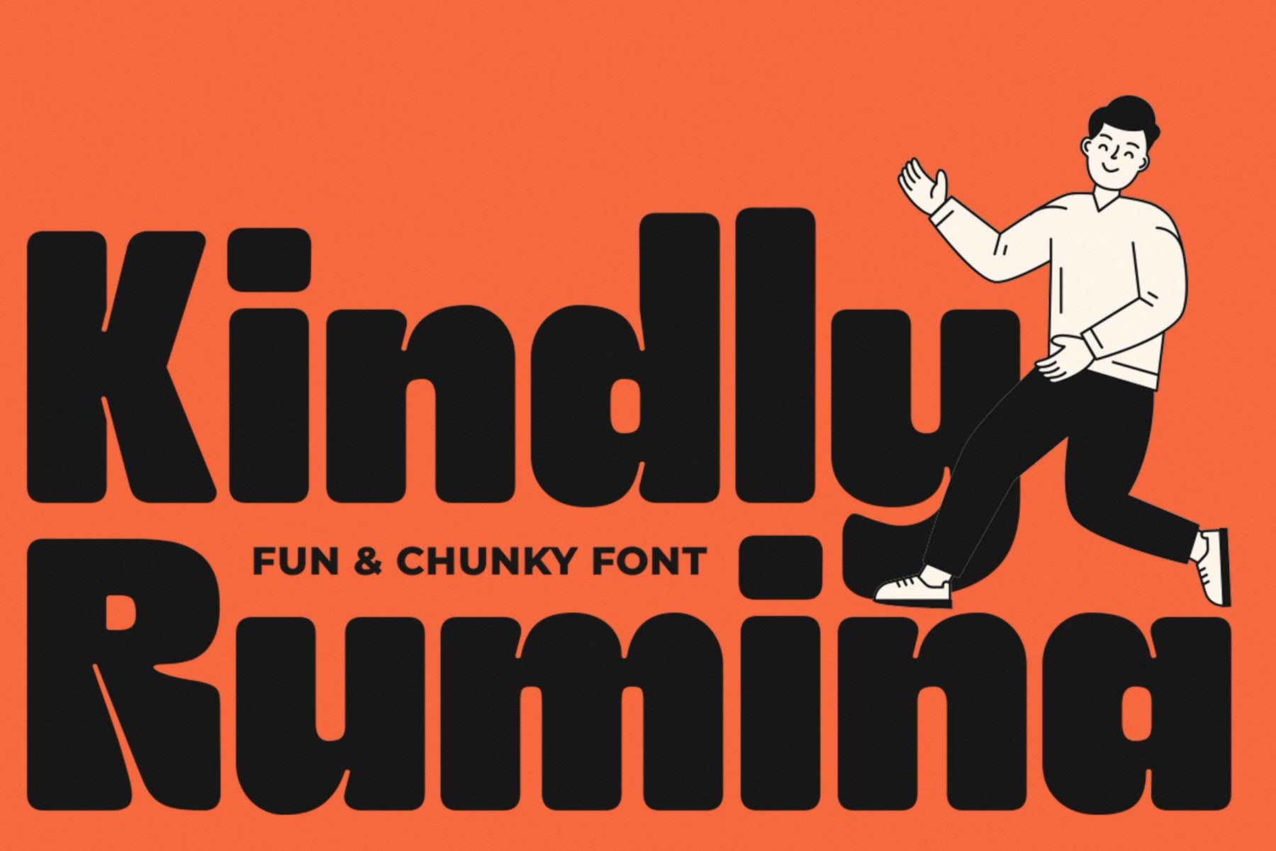 Experience the joy of design with Kindly Rumina Font by Lumina Type Studio. This contemporary fun and chunky display font is crafted to bring a unique flair to your creative projects. Accentuate your designs with this upbeat and robust typeface that easily captures attention while remaining versatile for a myriad of design needs. Discover the dynamism of Kindly Rumina Font, where modern aesthetics meet playful design.