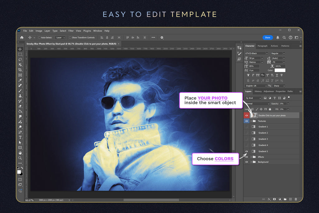 Create dramatic, dreamy, and cinematic portraits in seconds with the Smoky Blur Photo Effect created by Andrew Skoch. This high-resolution Photoshop template blends soft blur transitions with flowing smoke textures to give your images a mysterious, glowing, and modern look.