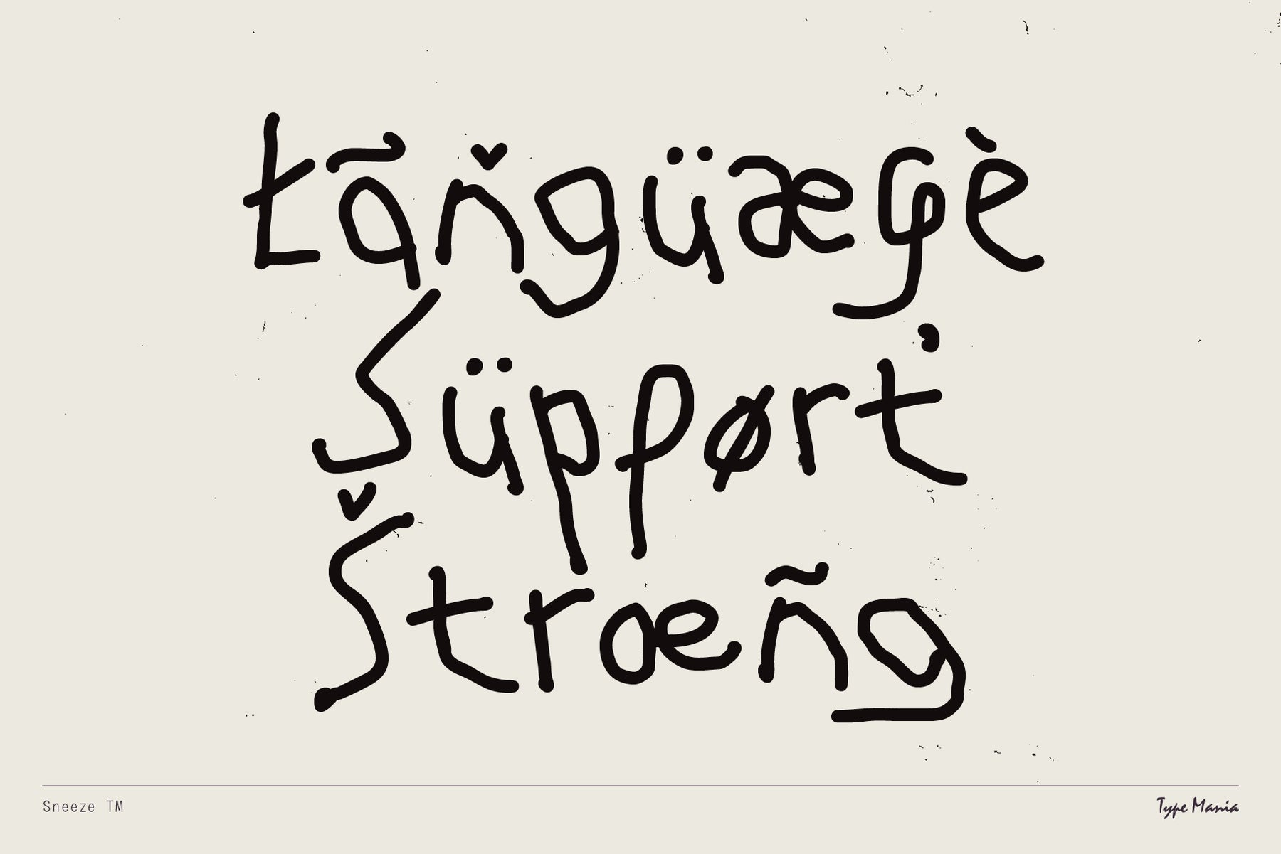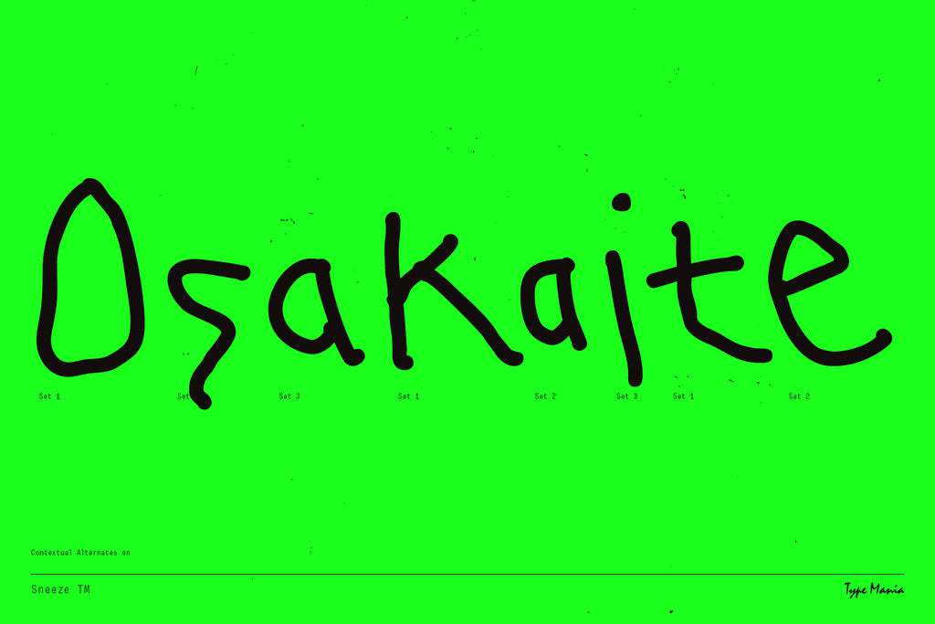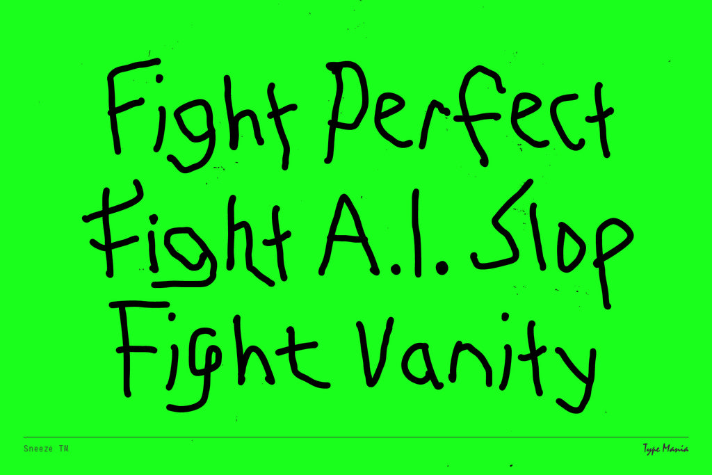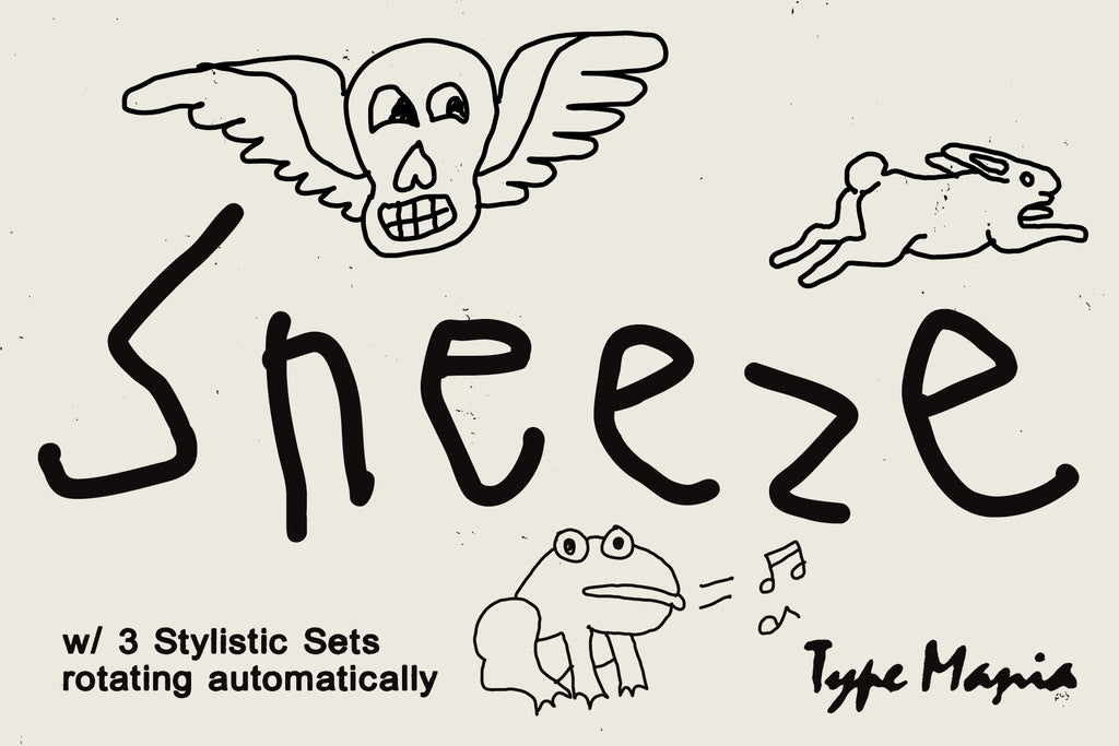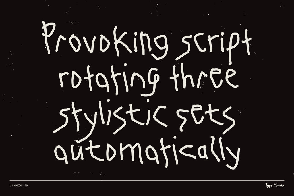 Get familiar with Sneeze TM by Type Mania – a rough marker font with no polish. With contextual alternates on, three stylistic sets rotate automatically, giving the text an organic flow. Fight perfect, fight vanity 🤘🤘