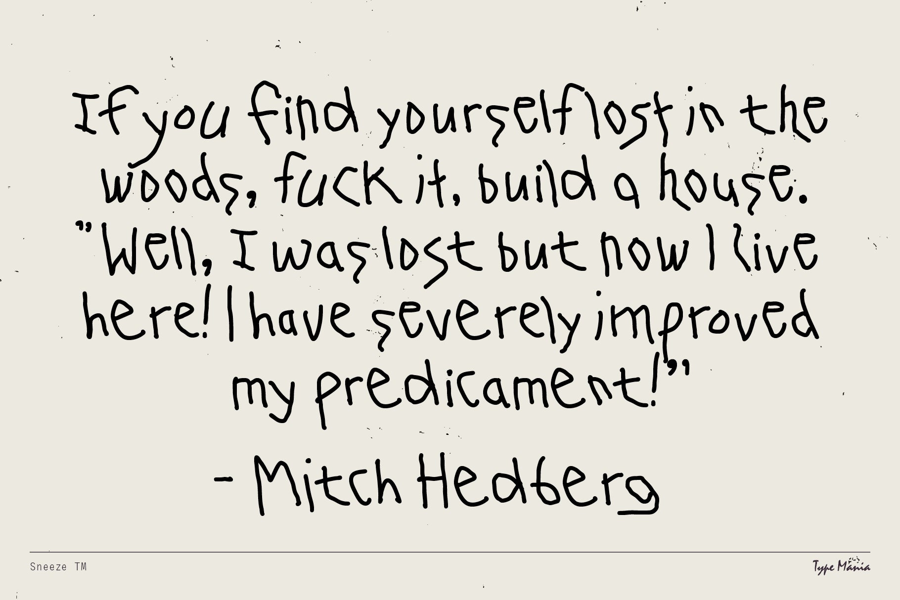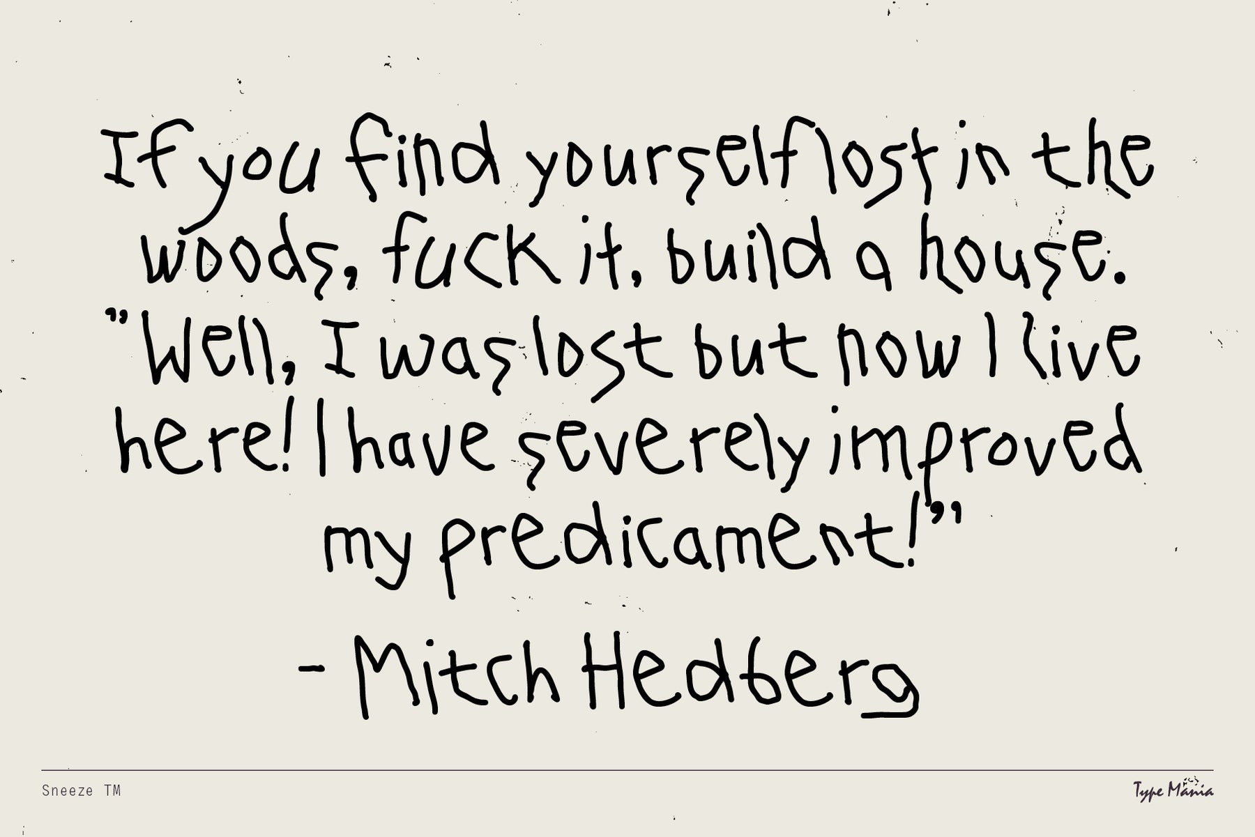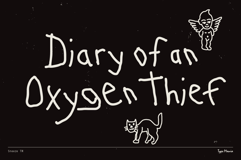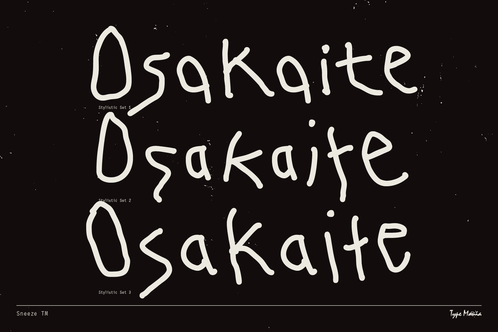 Get familiar with Sneeze TM by Type Mania – a rough marker font with no polish. With contextual alternates on, three stylistic sets rotate automatically, giving the text an organic flow. Fight perfect, fight vanity 🤘🤘