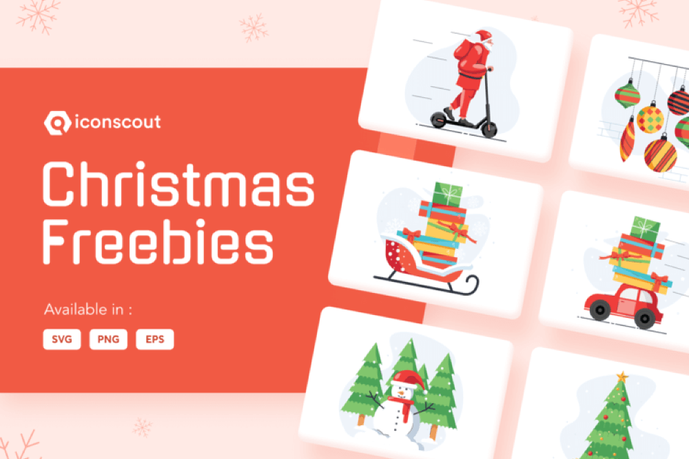 Check out this great Free Christmas Illustration Pack from IconScout. It contains 14 illustrations. These vector illustrations come in three different file formats: EPS, SVG, and PNG which can be used in all designing software.